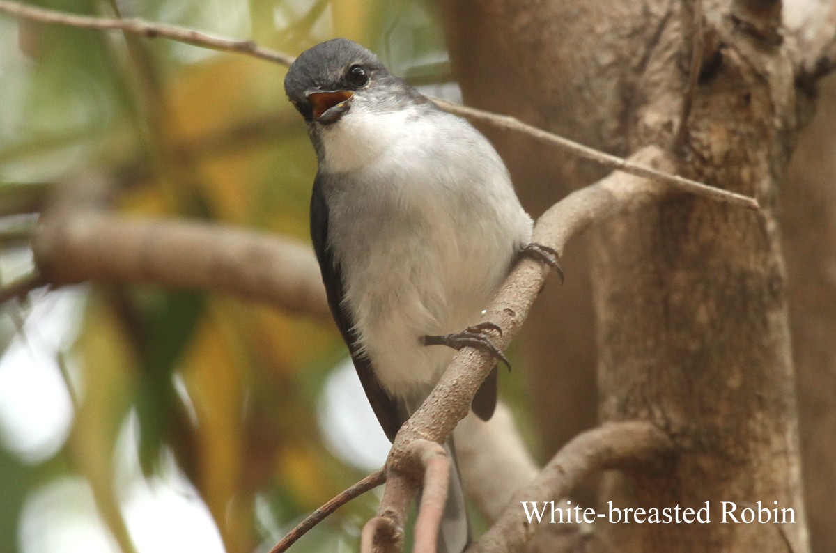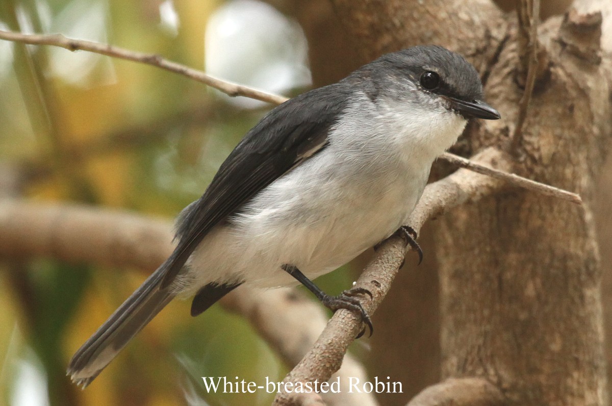 Glücklich, diese doch schwer zu entdeckenden Papageien gesehen und fotografiert zu haben, fuhren wir gegen 7.20 h zurück zum Campingplatz und frühstückten erstmal ausgiebig. Dabei besuchte uns ein White-breasted Robin, der nur hier im äußersten Südwesten Australiens vorkommt. |
