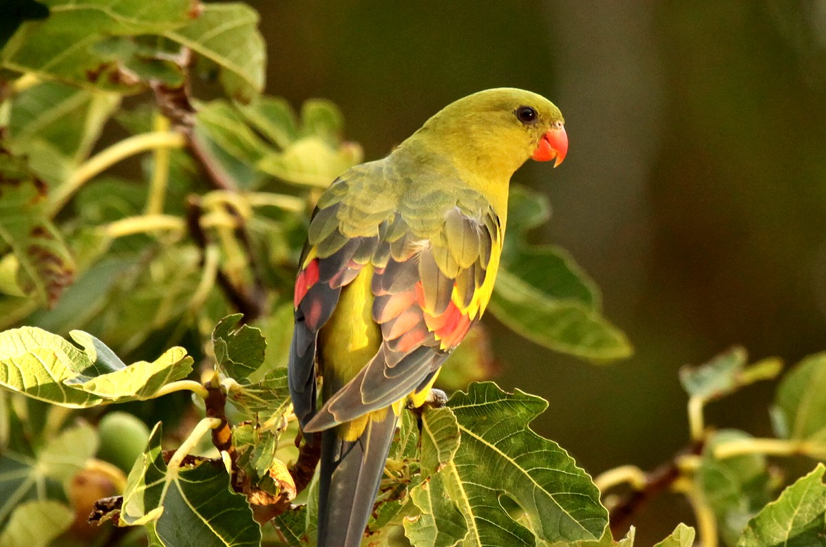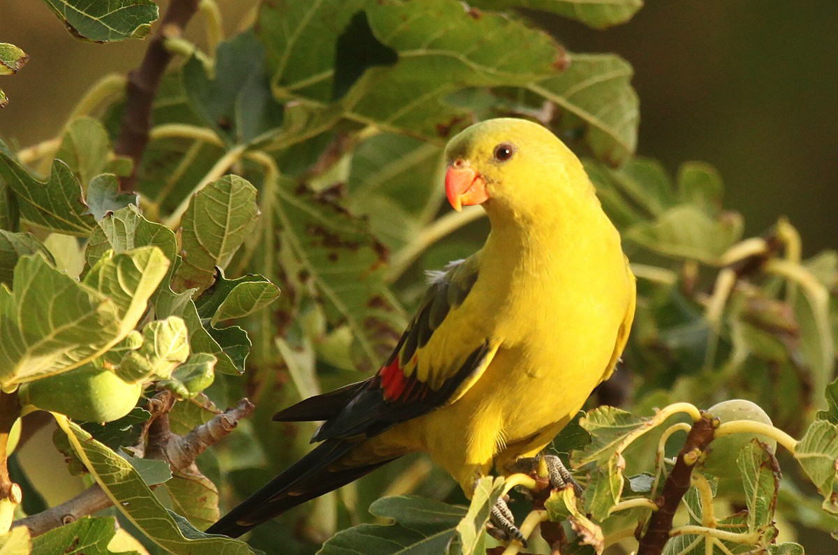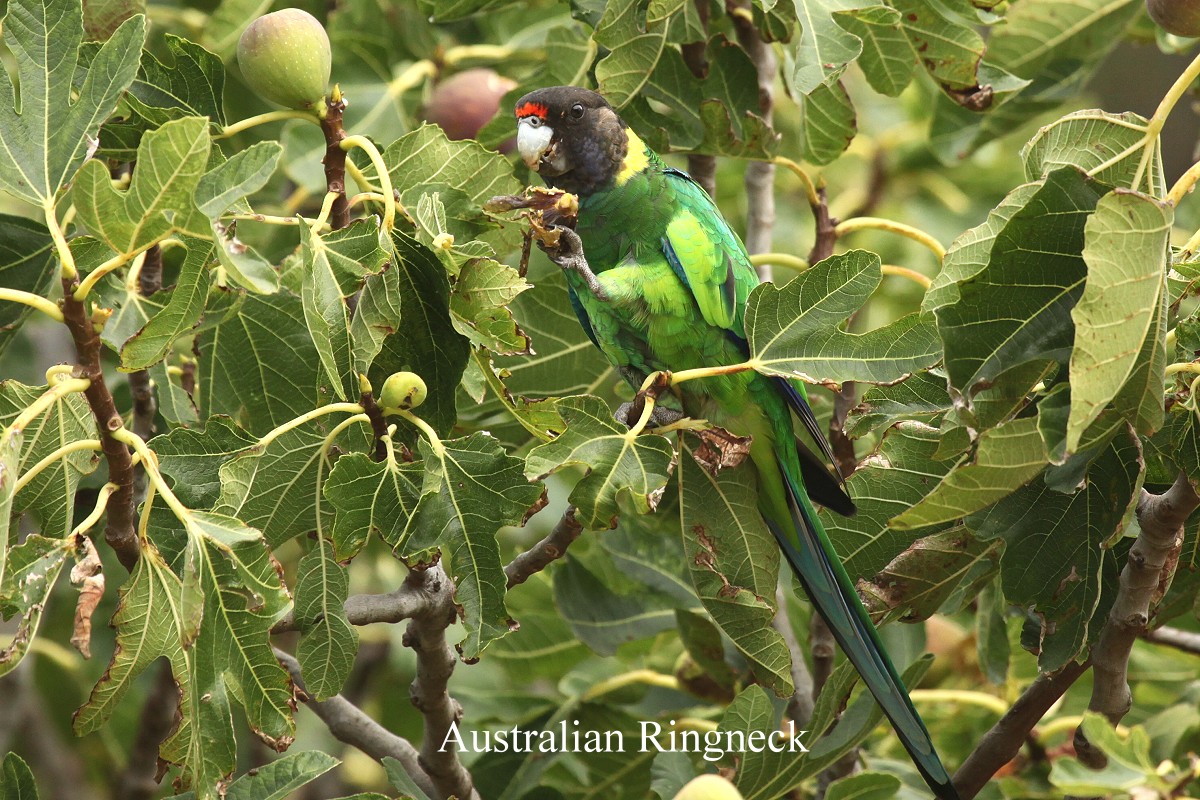 Gegenüber steht ein Feigenbaum mit leckeren Früchten, wie wir selber probierten. Dieser Baum war aber auch Anziehungspunkt für andere Papageien (Ringnecks und Regent Parrots). |