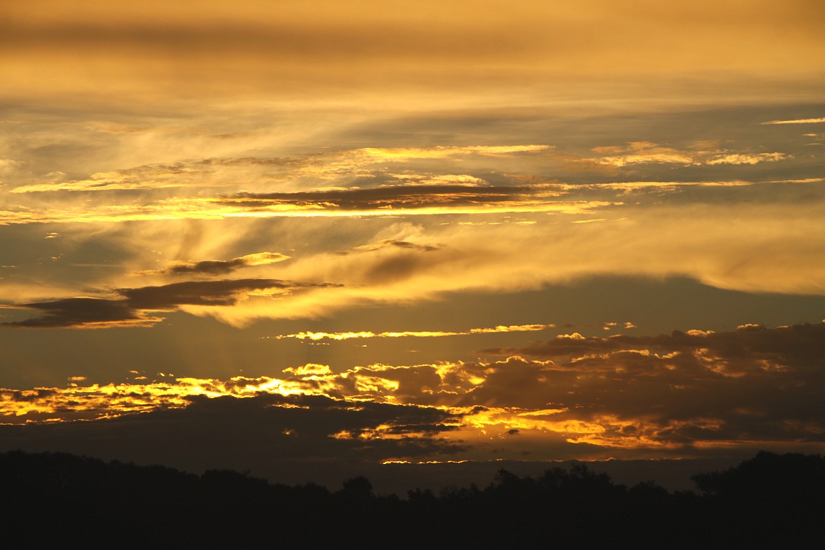Ich spülte noch alles in der Campingküche und schaute mir dann den Sonnenuntergang an. Inzwischen war die Sonne sehr tiefstehend wieder zu sehen, nachdem sie vorher zeitweise hinter Wolken versteckt war. |