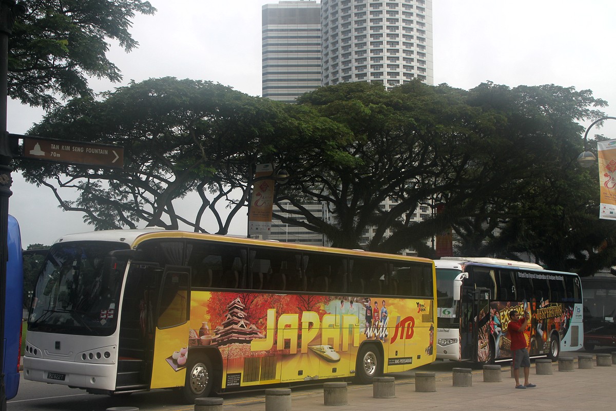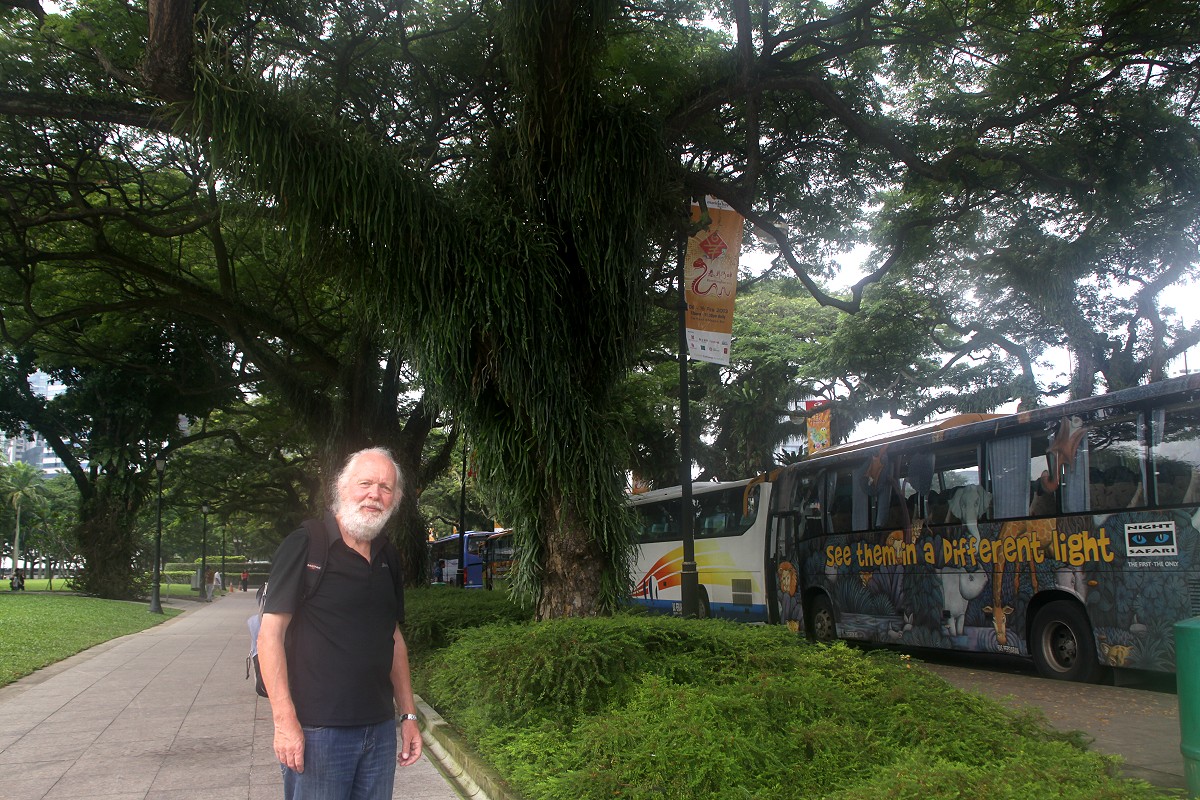 Um 7.15 h standen wir auf und gingen zum Frühstück. Tomoko aß nicht viel, sie träumte schon von einem leckeren deutschen Frühstück… Da wir um 12.00 h das Zimmer verlassen müssen, fingen wir anschließend schon mal an zu packen. Gegen 9.00 h machten wir uns auf zu einem Spaziergang zum Merlion an der Marina Bay. Es waren schon viele Touristen in Gruppen unterwegs, meistens Chinesen. Auch die Schlange der wartenden Busse war schon lang. Die Luft war noch angenehm kühl, wenn man das Wort kühl für Singapur überhaupt benutzen kann. Am Ziel angekommen, steuerten wir nach ein paar gemachten Fotos gleich das Café "Coffee Bean" an. Da Tomoko nicht viel gefrühstückt hatte, bestellte sie ein Stück Cheese-Cake und einen Cappuccino. Ich begnügte mich nur mit einem Cappuccino. |