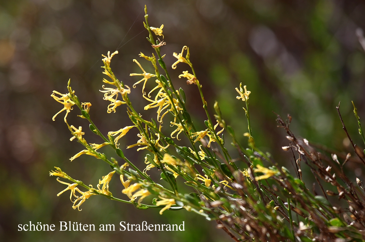 Kurz vor Badgingarra machten wir um kurz nach 9.00 Uhr einen kurzen Stopp. Tomoko hörte einige Vogelstimmen in einem dichten Busch, doch zu sehen gab es kaum was. Ein Falke und ein Adler (Wedge-tailed Eagle) flogen vorbei. Wir fotografierten einige schöne Pflanzen am Straßenrand. |