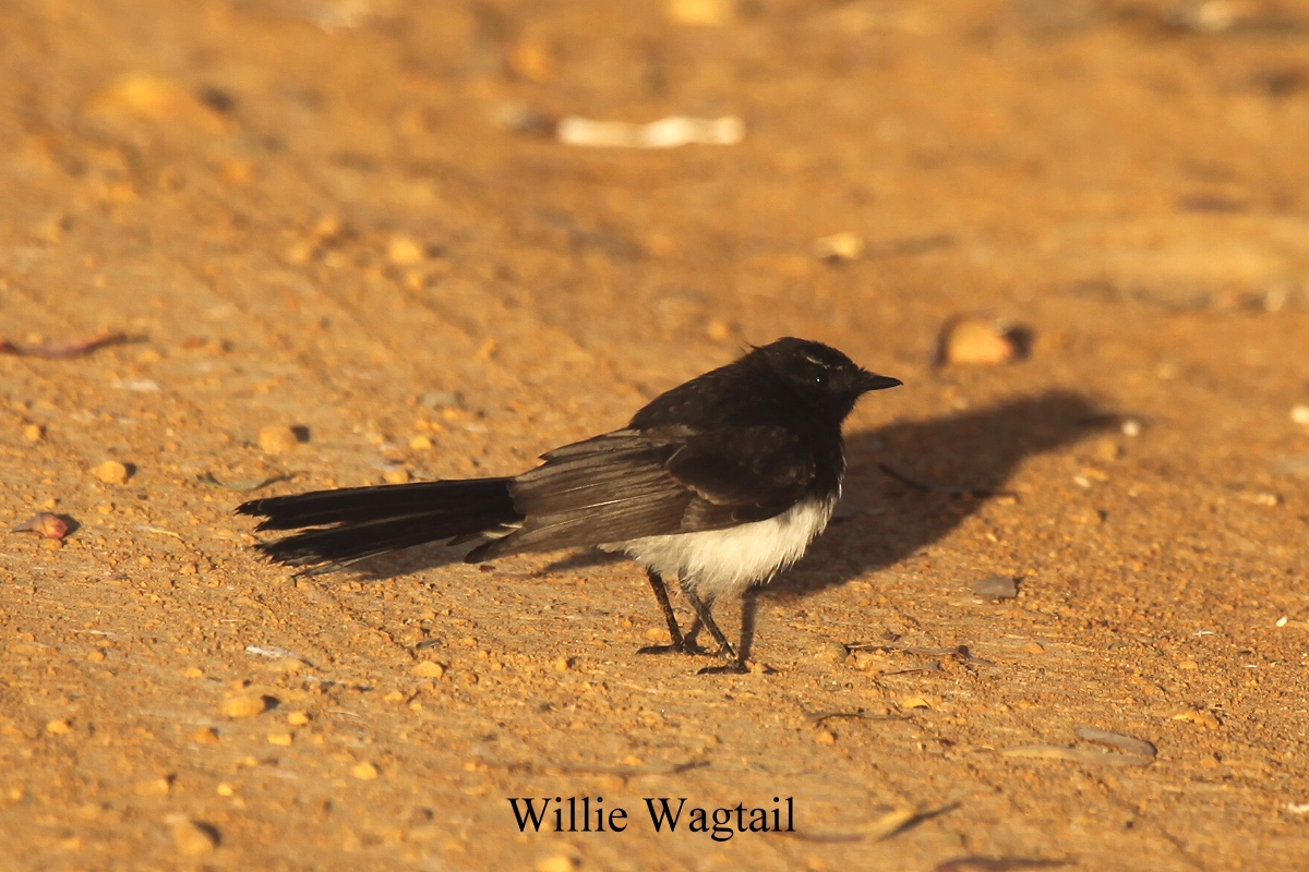 Doch es wurde Zeit, mit den Vorbereitungen zum Abendessen zu beginnen. Tomoko kochte heute ein schmackhaftes Ratatouille mit organischem Basmati-Reis. Dabei sah sie aus den Augenwinkeln, wie anscheinend ein Hund vorbeilief. Als der sich aber hüpfend näherte, sah sie, dass es sich um ein Känguru handelte. Ich fing derweil schon mal an Tagebuch zu schreiben. Um 18.00 h unterbrachen wir beides, und gingen noch mal zum Strand, der jetzt im Licht der späten Nachmittagssonne total leer war. Nur zwei große Möwen (Pacific Gull) waren noch da. Wir gingen ein wenig spazieren und als wir nach ein paar hundert Metern den Strand an einer anderen Stelle wieder verließen, entdeckten wir eine Gruppe Kängurus, die gemütlich im Grünen ihr Abendessen zu sich nahm. Auch einige Vögel (New Holland Honeyeater, Willie Wagtail) konnten wir im Licht der tiefstehenden Sonne fotografieren. |