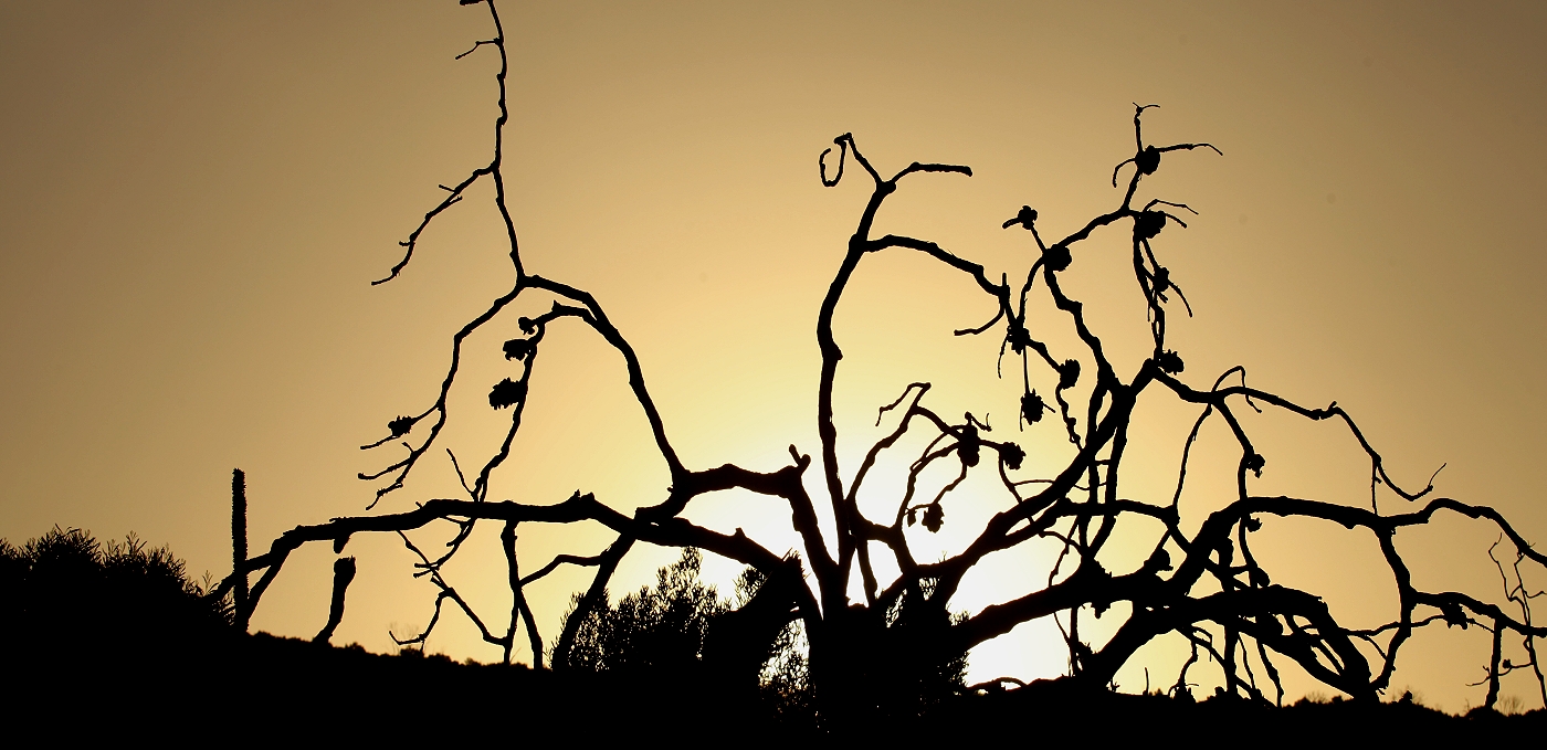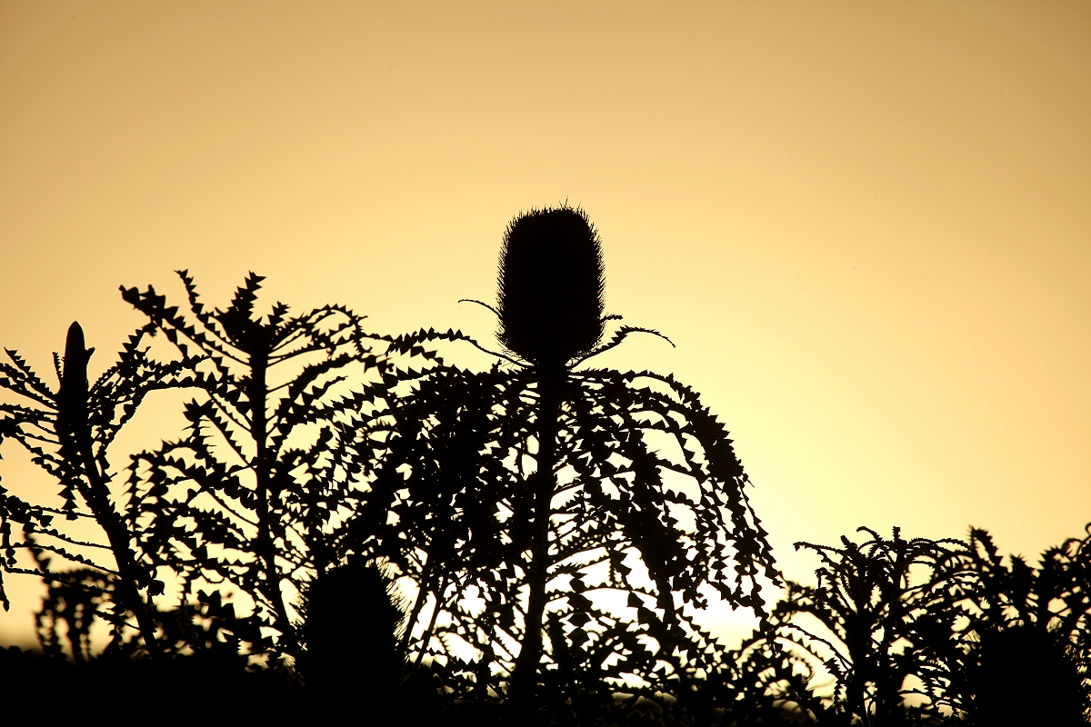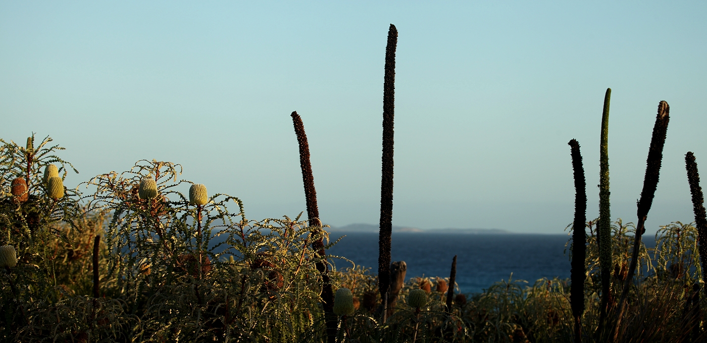 Allmählich senkte sich die Sonne. Während ich spülte, machte Tomoko noch einen kleinen Rundgang und sie konnte doch tatsächlich ein Honey Possum entdecken, das auf einer dieser hier typischen Blüten saß, aber blitzschnell wieder verschwand, so dass Tomoko leider kein Foto machen konnte. Doch sie war trotzdem überglücklich eins gesehen zu haben. |
