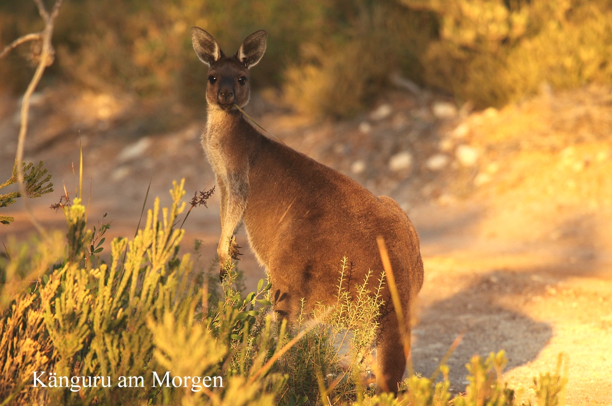 Tomoko wachte schon um 5.15 h auf und machte gleich einen Morgenspaziergang, bei dem sie 2 Kängurus sah, sowie einen Grey Butcherbird, Silvereyes und einige New Holland Honeyeaters. |