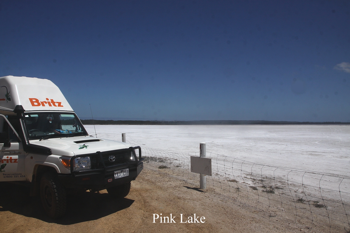 Ich hatte gestern unseren Wasserbehälter mit einem Luftloch versehen, diesen dann aber nachts so abgestellt, dass das Loch unten war, ich Schafskopf. Heute Morgen war der Behälter natürlich leer. Gott sei Dank war er sowieso nur noch zu einem Viertel voll. Das Wetter war gut, leicht bewölkt, aber inzwischen wieder angenehm warm. Der Cape Arid Nationalpark war der östlichste Punkt auf unserer Reise. Heute geht es über Esperance weiter nach Westen. Um 8.45 h trafen wir auf einen Black-shouldered Kite, der aber beim Zurücksetzen des Autos gleich wegflog. Kurze Zeit später entdeckte Tomoko einen Australian Bustard links von der Piste im Feld. Die Zeit reichte gerade noch für ein Belegfoto, so schnell suchte er das Weite. Um 10.45 h erreichten wir Esperance, beide ziemlich traurig, war uns doch unterwegs ein Vögelchen ins Auto geflogen. An einer Tankstelle tankten wir wieder voll und füllten auch den Wassertank wieder auf. Auf der gegenüberliegenden Straßenseite konnten wir auch unsere Gasflasche wieder auffüllen, die schon ziemlich leer war. Man kann den Flüssiggasinhalt nur grob schätzen, und da wir unser Missgeschick vom letzten Jahr vermeiden wollten, wo uns mitten im Outback während des Kochens das Gas ausging, füllten wir lieber rechtzeitig nach. Unser nächster Gang führte zu Woolworths, auffüllen der Lebensmittelvorräte. Um 12.10 h waren wir damit fertig und wollten uns ins Café begeben, um dort wieder leckeren Kuchen zu essen. Leider war das Café heute gegen Mittag geschlossen, so dass wir ziemlich enttäuscht weiterfuhren. Wir verließen Esperance auf dem Pink Lake Drive Richtung Pink Lake, den wir nach einigen km erreichten. Der See war aber nicht pink, sondern schneeweiß, da es sich um einen trockenen Salzsee handelt. Nur in weiter Ferne schimmerte etwas Wasser. |