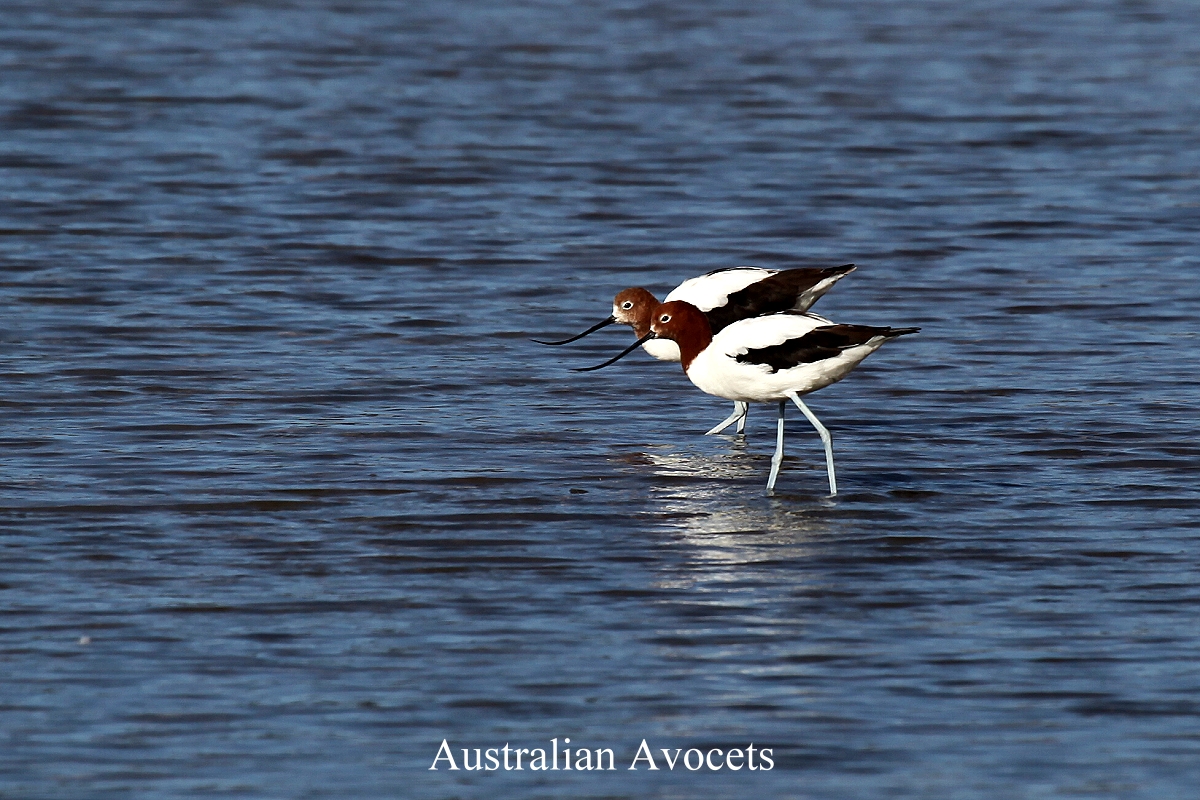 Das Sonnenlicht hatte am Spätnachmittag wieder seine typisch warme Färbung angenommen, in dem Fotos besonders stimmungsvoll wirken. Wir fotografierten demnach auch fleißig. Die Avocets von vorhin waren wieder zurückgekommen und suchten nach Futter. Auch ein Willie Wagtail sonnte sich im warmen Abendlicht. |
