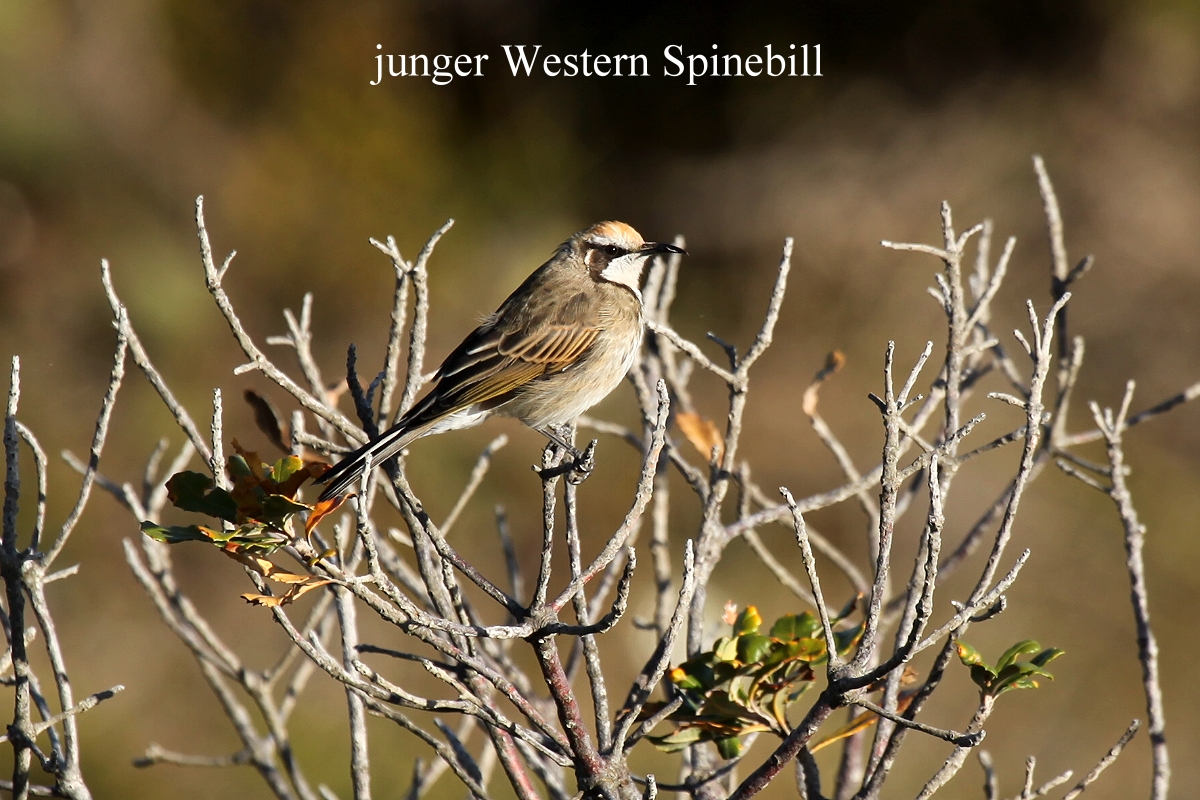 Die Bewegung in der frischen Luft tat uns gut. Die Vegetation hatte eine üppig grüne Farbe. Die meisten Pflanzen waren aber ziemlich stachelig. Leider sahen wir außer 2 jungen Western Spinebills, einigen New-Holland Honeyeaters und Schwalben keine weiteren Vögel. |