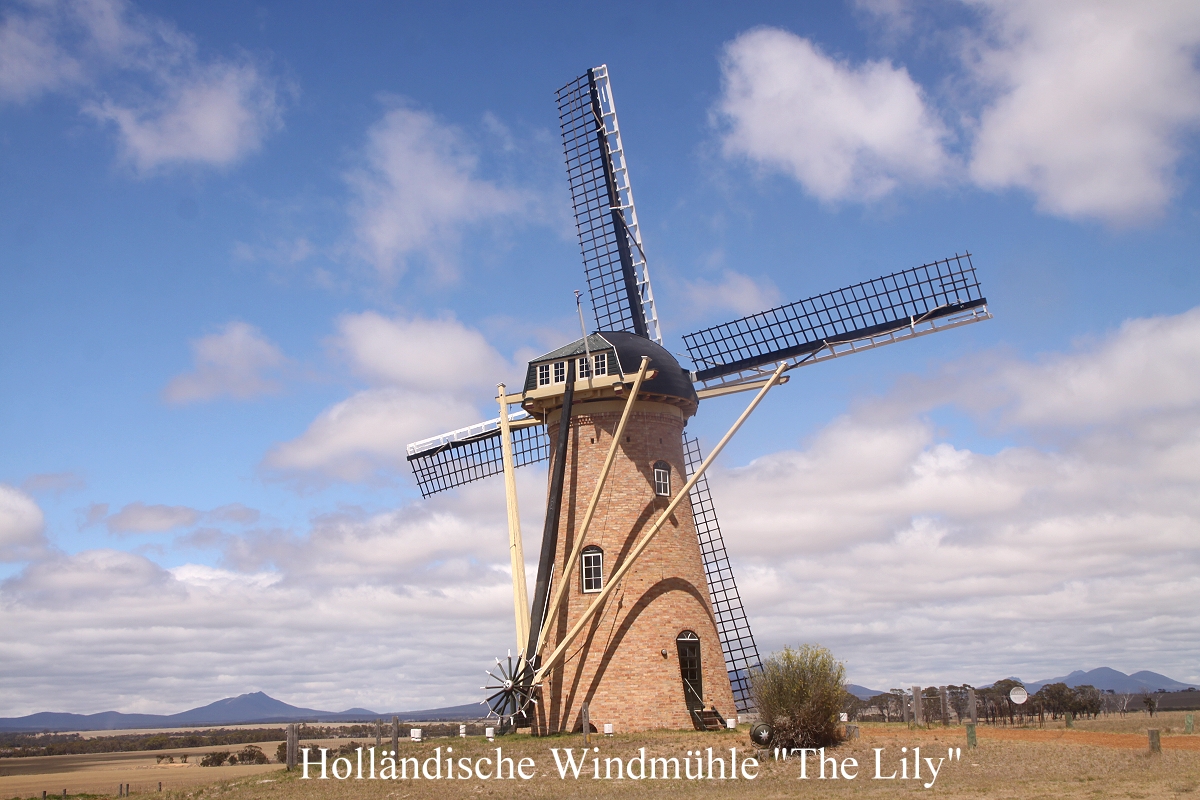Um 11.20 h, kurz vor erreichen des Nationalparks, sahen wir etwas abseits von der Straße eine holländische Windmühle "The Lily", von der wir ein paar Fotos machten. |