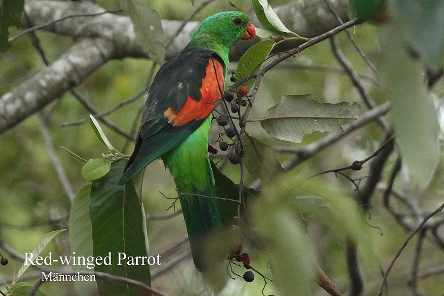 Ich schlief sehr schlecht in dieser Nacht. Irgendwann gegen Mitternacht wurde ich wach mit starken Extrasystolen. Tomoko machte mir einen Waschlappen nass, mit dem ich mich etwas abkühlen konnte. Danach ging es wieder besser, aber ich schlief weiter sehr unruhig. Erst gegen Morgen fand ich etwas Schlaf und wurde erst wach, als Tomoko gegen 7.40 h von ihrem Morgenspaziergang zurückkam. Sie hatte etliche Vögel beobachten und fotografieren können, u.a. Red-winged Parrots, Spangled Drongo, Mistletoebird und Dusky Honeyeater.