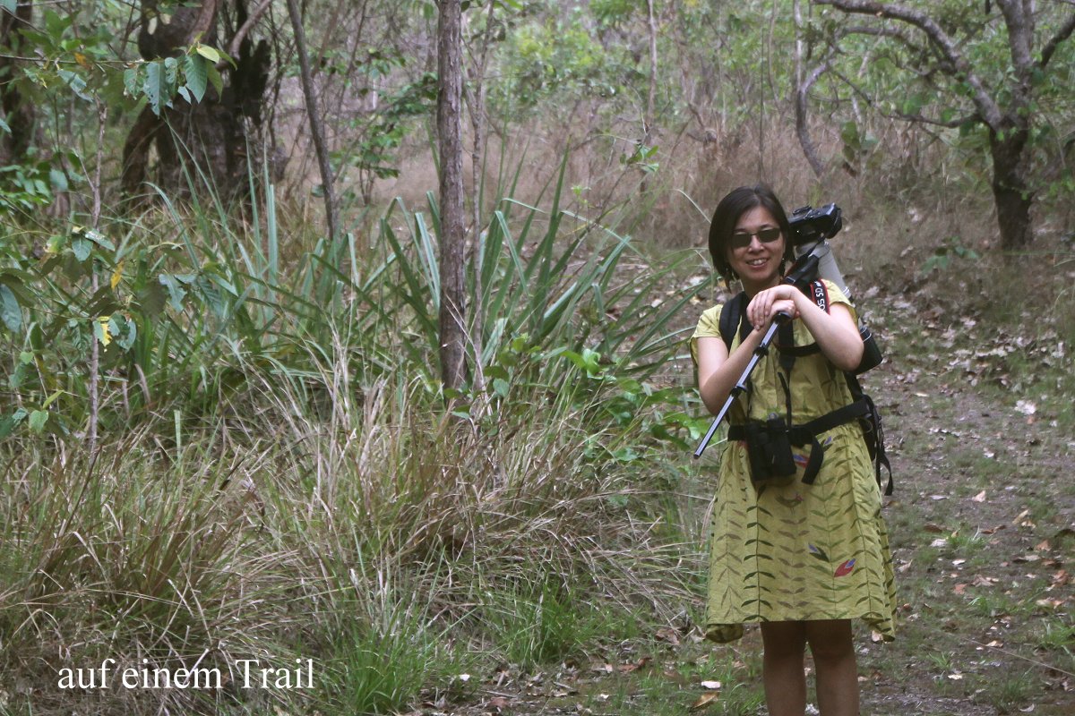 Ein Stück gingen wir noch auf einem mit einem blauen Pfeil markierten Trail. Auch hier war viel los. Auf dem Rückweg gegen 18.30 h sahen wir in einiger Entfernung auch noch zwei Wallabys. Insgesamt konnten wir bei diesem Spaziergang sehen: u.a. (Dusky Honeyeater, White-throated Honeyeater, Blue-faced Honeyeater, Varied Triller (m+w), Red-winged Parrot, Sulphur-crested Cockatoo, Little Corella, Wattlebird). Auch zahlreiche Schmetterlinge und Libellen schwirrten umher, für ein Foto waren die allerdings zu flatterhaft.
