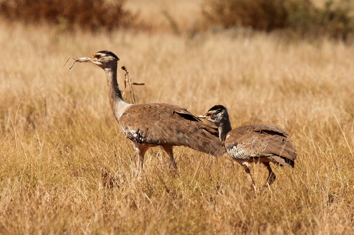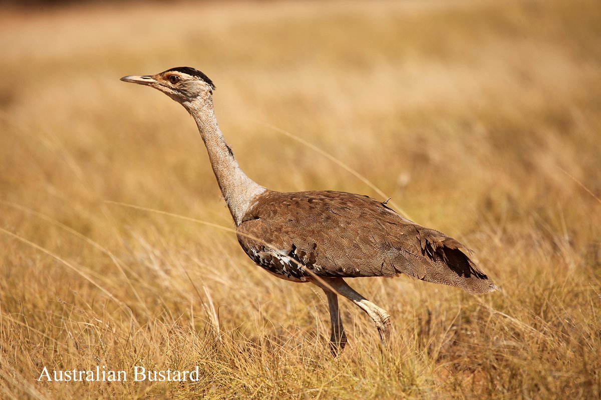 Bald danach erreichten wir den Eingang zum Nationalpark. Wir bezahlten den Eintritt von 12,- $ und fragten auch nach einer Übernachtungsmöglichkeit. Der Ranger, eine Frau, informierte uns, dass die Plätze ziemlich voll seien, aber auf einem Platz sei noch ein schattiger Platz vorhanden. Als wir aber dort ankamen, stellten wir fest, dass an diesem Platz mit der Nr.11 kein Schatten war, außerdem lag der Platz nicht sehr schön. Ein Camping Host, bei dem wir uns melden sollten, war nicht zu sehen. Ein Nachbar sagte, dass der Host mit einem Boot zum Fischen hinausgefahren sei und wohl irgendwann zurückkommen werde. Darauf wollten wir nicht warten. Also fuhren wir die 8 km wieder zum Eingang zurück und sprachen erneut mit dem Ranger. Sie sagte uns, dass wir einfach weiterfahren sollten und schauen, wo noch etwas frei sei. Sie nannte uns auch einige Plätze, wo das der Fall war. Also fuhren wir wieder los. Am Tulki Beach bogen wir ab. Gleich bei der Einfahrt sahen wir 2 große Vögel, Australian Bustards (Trappe), ein Altvogel mit seinem Jungen, die gemütlich den Weg überquerten. |