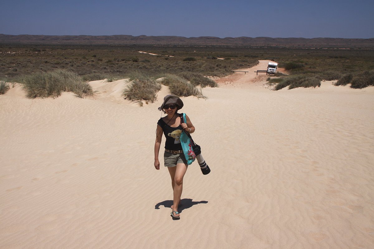 Anschließend fuhren wir zu einem Einkaufszentrum, wo wir zunächst einen neuen Gasschlauch in einem Geschäft für Campingzubehör kauften. Damit konnten wir nun wieder mit unserem Gaskocher kochen. Nebenan befinden sich 2 IGA Supermärkte. In einem kaufte Tomoko wieder Lebensmittel ein, auch Brot in der nahen Bäckerei "Brumby`s". Als ich die Sachen hinten im Auto verstauen wollte, lief mir Wasser entgegen. Da war doch während der Fahrt unser am Boden stehender 10-l-Wasserbehälter umgefallen, genau auf meinen danebenstehenden Rucksack. Aus dem oberen Luftloch waren bestimmt 2 l ausgelaufen, die meinen Rucksack gründlich gewässert hatten. Ich räumte schnell alles aus und legte es in die Sonne zum Trocknen, so eine Sauerei… Hoffentlich haben Netbook und Videokamera keinen Schaden bekommen, sehen wir mal… Nun war Internet angesagt. Im Visitor-Center hatte man uns einige Adressen gegeben. Eine davon steuerten wir an, das Dive-Center von Exmouth. Die Verbindung war sehr gut und ich konnte meine 139 neuen Emails, von denen allerdings 90% Spam waren, schnell herunterladen. Wir blieben eine Stunde da, kostete uns jeweils 6,- $. So langsam meldete sich wieder der Hunger. Ich hatte vorhin bei Brumby`s leckeren Kuchen gesehen, den Tomoko merkwürdigerweise nicht bemerkt hatte. Dorthin fuhren wir und aßen jeder ein leckeres Stück Kuchen mit viel Whipped Cream drin. Dazu passte ein leckerer Cappuccino. Wir konnten draußen unter einem Sonnenschirm sitzen, da nur die Sonnenstrahlung heiß war, die Luft aber relativ angenehm blieb. Anschließend tankten wir das Auto wieder voll und hielten noch an einem Getränke-Supermarkt "Thirsty Camel", wo wir unsere Biervorräte ergänzten und eine Flasche Weißwein kauften mit einem schönen Etikett, das eine Ente zeigte. Entelchen war begeistert. |