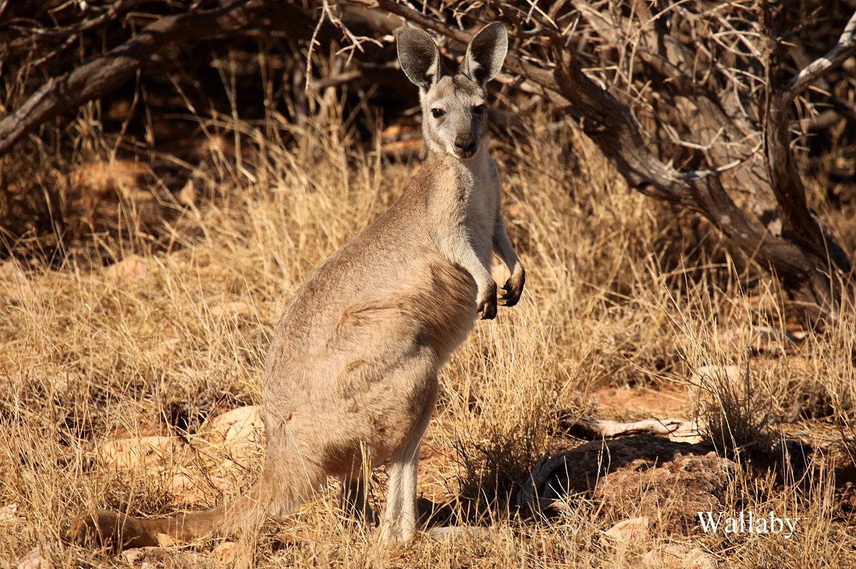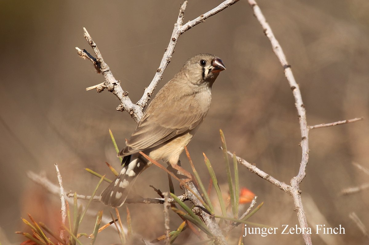 Ein großes Känguru hüpfte vorbei, ein Red Kangaroo ? Wir waren uns nicht sicher, höchstwahrscheinlich doch ein Wallaby. Es herrschte ein heftiger Wind, der manchmal die Gasflamme löschte, wenn man sie zu klein einstellte. Das mit dem Wind war aber andererseits recht angenehm, auf eine Klimaanlage konnten wir deshalb gut verzichten. Auch einige kleine Vögel kamen näher: Singing Honeyeater, Variegated Fairy-wren (m+w), mehrere Zebra Finchs, White-winged Fairy-wren. |