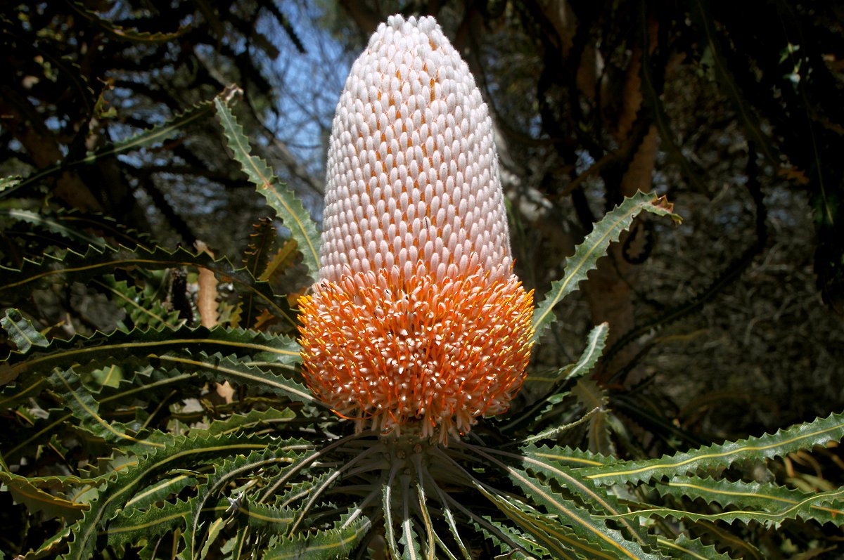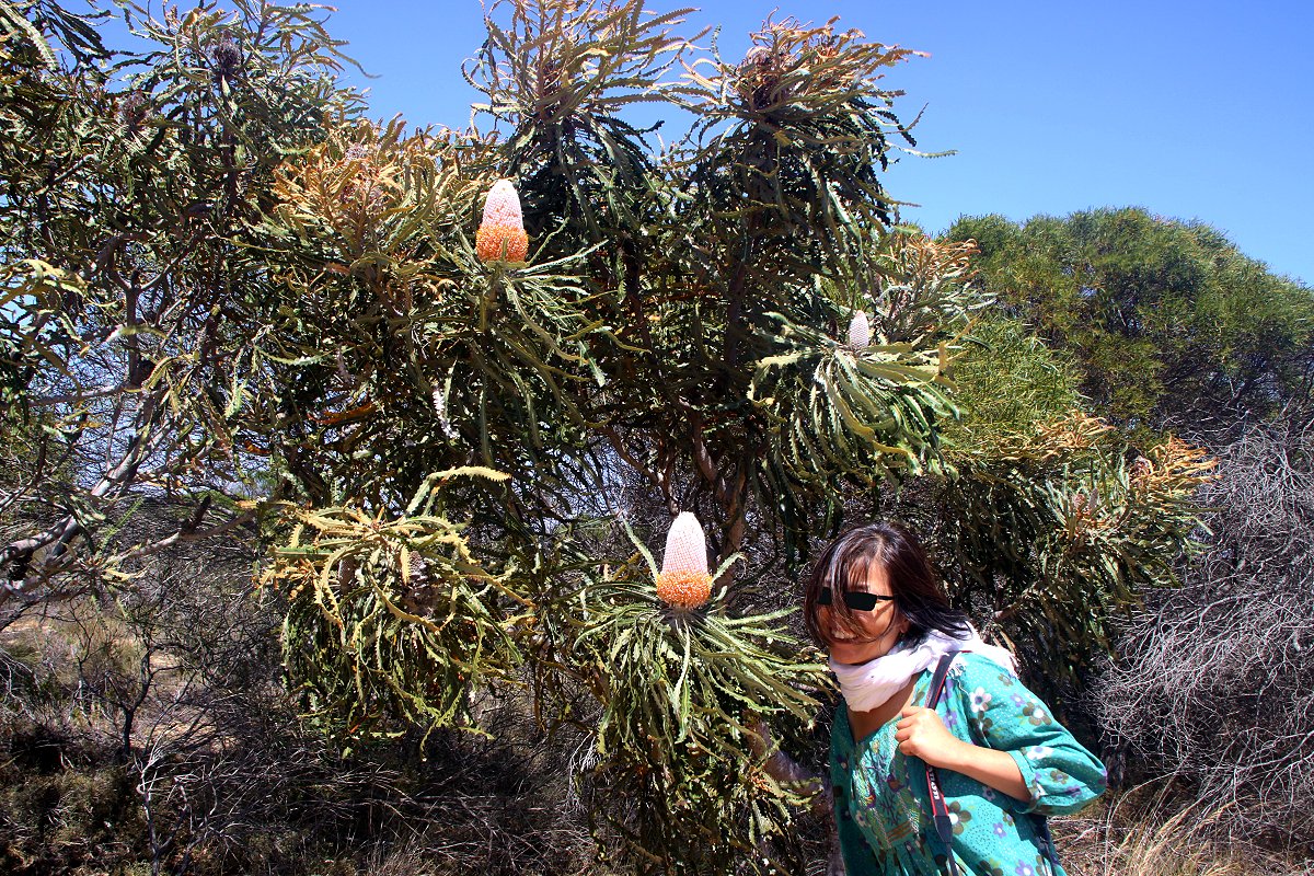 Wir verließen Kalbarri in südlicher Richtung. Auf der Strecke lag die Abzweigung zum Natural Window am Meer, 4 km entfernt. Als wir am Parkplatz dort ankamen und sahen, dass man noch 700 m bis zum Meer gehen musste, verzichteten wir angesichts des wieder aufgefrischten starken Windes auf den Spaziergang und fuhren weiter. Kurz darauf verließen wir den Kalbarri NP. Einige schöne Blumen konnten wir noch fotografieren, |