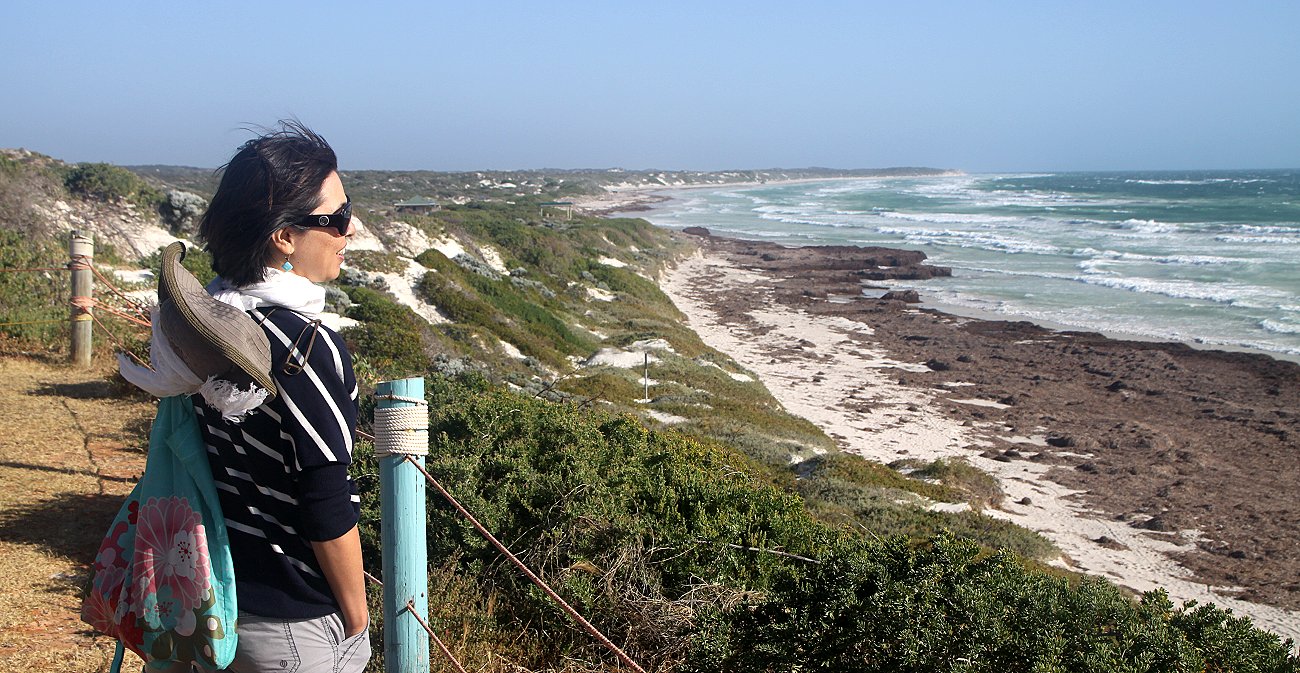 Bei Woolworths ergänzten wir noch unsere Lebensmittel, bevor wir um 14.45 h weiterfuhren Richtung Dongara / Port Denison. Der Wind war heute besonders heftig. Anscheinend bläst der das ganze Jahr so stark, denn die meisten Bäume auf der Strecke stehen unglaublich schief und gebeugt. Die Temperatur war deutlich kühler, obwohl die Sonne schien. Tomoko hatte schon früh ihre Strumpfhose angezogen und schützte sich mit einem Schal gegen den Wind. Kurz nach 16.00 h erreichten wir Dongara. Es reichte uns für heute mit dem Fahren und wir suchten nach einem Caravan-Park. Wir fuhren Richtung Port Denison, das direkt am Meer liegt. Erst machten wir eine kurze Runde über den dortigen BIG4-Caravan-Park, der uns aber nicht so ganz zusagte. Wir fuhren noch ein kleines Stück weiter und erreichten den Holiday Park. Hier bekamen wir ein wirklich schönes Plätzchen in einer windgeschützten Ecke. Ein kleiner Spaziergang zum nahen Strand schloss sich an. Als wir aber über die Düne nach oben kamen, fegte uns ein solcher Sturm ins Gesicht, dass wir Mühe hatten, das Gleichgewicht nicht zu verlieren. Am Strand hatten sich meterhohe Berge aus trockenen Algen gebildet, kein Strand zum Baden... |