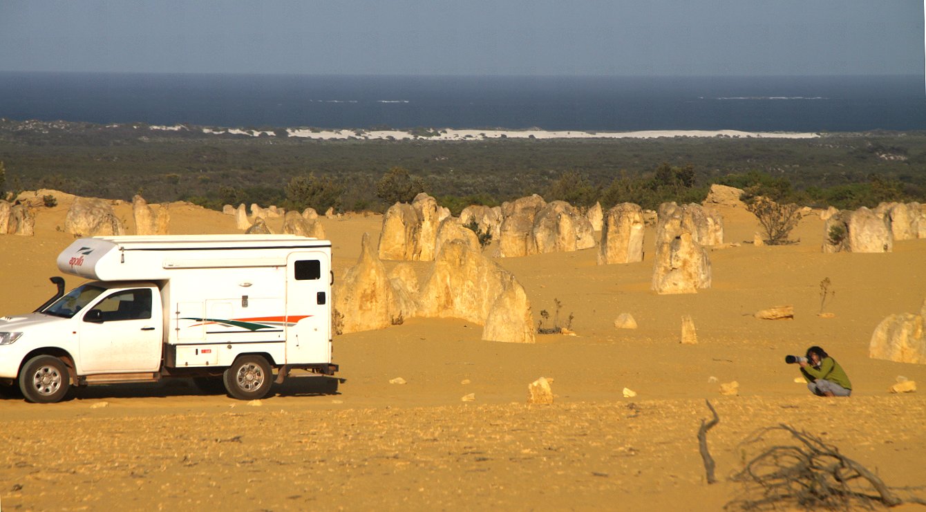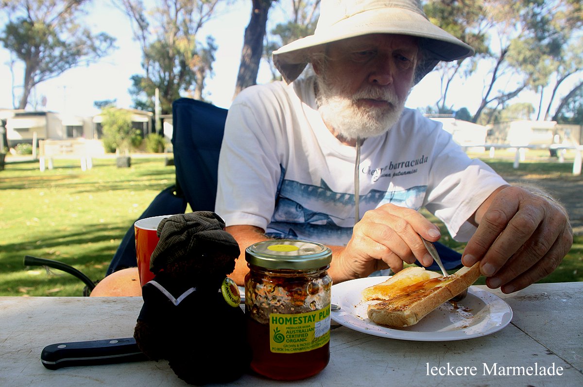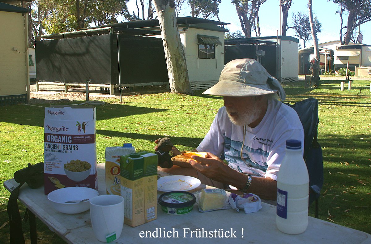 erreichten. Am Eingang sagte man uns, dass wir keinen Eintritt zahlen müssten, da wir heute schon den Nambung-Nationalpark mit den Pinnacles besucht hätten und das Eintrittsticket dort auch für Yanchep gültig sei. Gut, so sparten wir 12,- $. Wir spazierten ein wenig herum, aber es war jetzt gegen Mittag sehr heiß geworden. Tomoko war ein wenig traurig, dass sie immer noch keinen Splendid Fairy-wren gesehen hatte… Eine geplante Wanderung verschoben wir aufgrund der Hitze auf morgen früh. Wir fuhren zum Capricorn Holiday Park, wo wir auch im Januar schon übernachtet hatten. Mein Name war noch im Computer, so dass wir nichts mehr ausfüllen mussten außer dem jetzt anderen Kfz-Zeichen. Wir erhielten einen schönen Platz unter hohen Bäumen, etwas abgelegen von den großen Caravans, die in einer anderen Ecke des Parks eng zusammenstanden. In den Büschen in der Nähe entdeckten wir zahlreiche kleine Vögel, einmal sogar 4 Fairy-wrens zur gleichen Zeit. Einige Wallabys hatten sich im Schatten der Bäume niedergelassen. Mehrfach zeigten sich auch Red Wattlebirds, Magpies und eine Laughing Turtle-Dove.