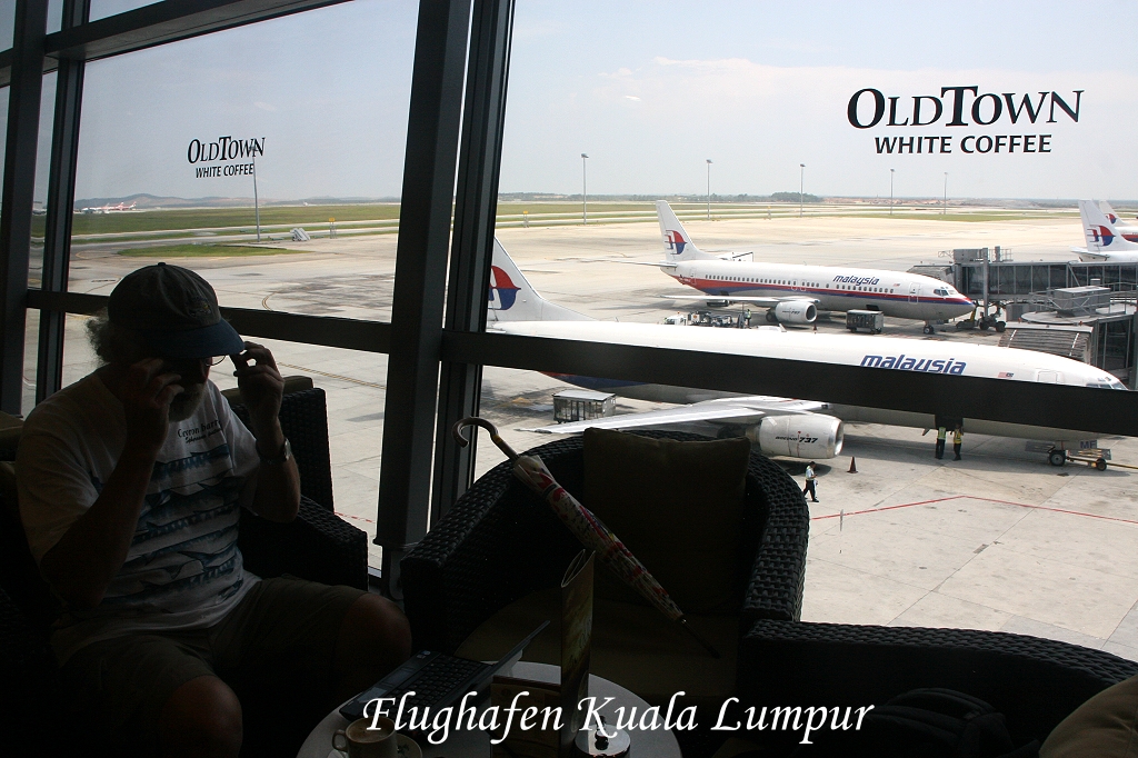 Der Flug nach Kuala Lumpur startete pünktlich um 11:35 Uhr. Der Flug selbst war angenehm ruhig, das Essen schmeckte gut und nach gut 2 ½ Stunden Flugzeit erreichten wir unser Zwischenziel Kuala Lumpur. Hier hatten wir gut 2 Stunden Aufenthalt. Bei einem leckeren Kaffee surften wir etwas im Internet und checkten E-Mails. Um 16:30 Uhr pünktlich erfolgte der Weiterflug nach Singapur. Es war drückend heiß in der Kabine, aber der Flug dauerte nur 55 min, so dass dies nicht so lästig war. In Singapur wurden wir von einem kräftigen Gewitter empfangen. Einige Blitze zuckten, doch wir landeten sicher. Die Einreiseformalitäten gingen auch schnell über die Bühne. Mit einem Taxi fuhren wir zum Changi-Village-Hotel. Da wir Hunger verspürten, gingen wir gleich in das thailändische kleine Restaurant in der Nähe, das wir noch von unserer letzten Reise gut in Erinnerung hatten. Wir wurden nicht enttäuscht, das Essen war einfach, schmeckte aber sehr. Wir kauften noch ein Pau für Tomoko und Bärchen sowie 3 Chang-Bier für Entelchen und mich. Beides verzehrten wir im Zimmer und schauten dabei im Fernsehen die Nachrichten über den Vulkanausbruch auf Island und den damit verbundenen Flugproblemen in Europa. Mal sehen ob unser Flug am kommenden Montagabend starten wird. Ich telefonierte noch mit Jon und verabredete ein Treffen mit ihm morgen Abend um 18:00 Uhr in der Lobby des Marriott Hotels. Wir duschten noch, bzw Tomoko nahm noch ein Bad, bevor wir kurz nach 21:00 Uhr schlafen gingen.