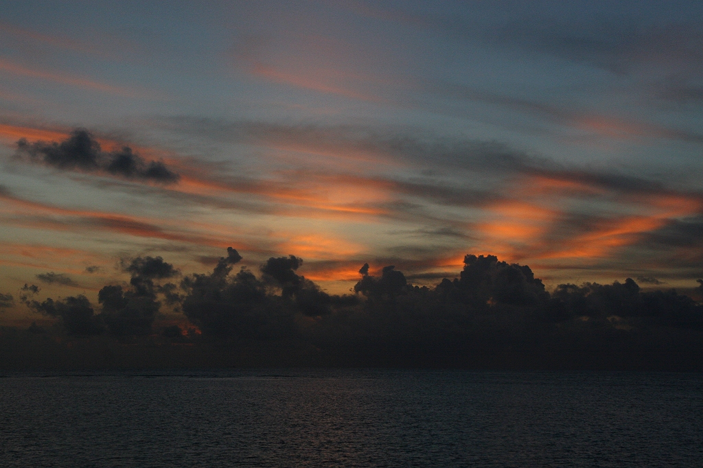 Der Kuchen schmeckte sehr gut. Da könnten wir das Abendessen eigentlich auslassen. Kurz vor 18:00 Uhr begaben wir uns auf die Westseite der Insel. Ein spektakulärer Sonnenuntergang deutete sich an. |