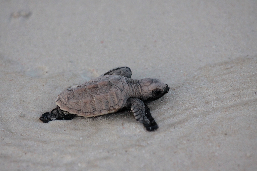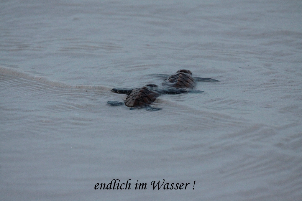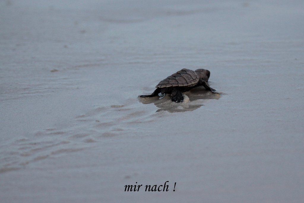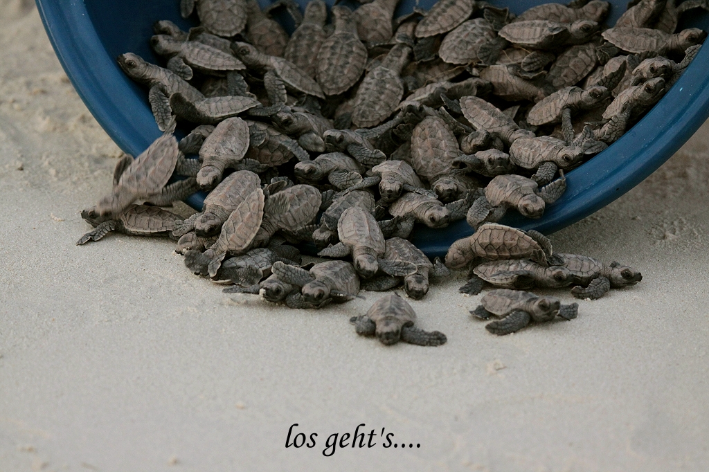 Dort wurde die Wanne vorsichtig gekippt und 98 kleine Schildkröten suchten zappelnd und strampelnd das Wasser zu erreichen, ein unglaublich berührender Anblick. |