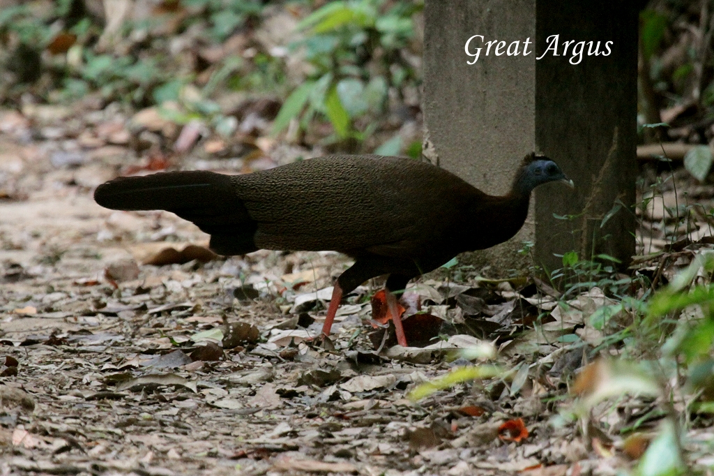 Um 7:30 Uhr standen wir am Fluss und warteten auf ein Boot, das uns auf die andere Seite bringen sollte. Wir warteten 10 min bis endlich ein Boot kam. Es lag noch dichter Nebel über den Wäldern. Langsam gingen wir zum Trail Richtung Lubuk Simpon. 3 Crested Fireback (Weibchen) kreuzten gemächlich nach Futter suchend unseren Weg. Wir bewegten uns ganz vorsichtig auf sie zu, anscheinend hatten sie uns nicht bemerkt, zumindest hatten sie keine Angst vor uns. |