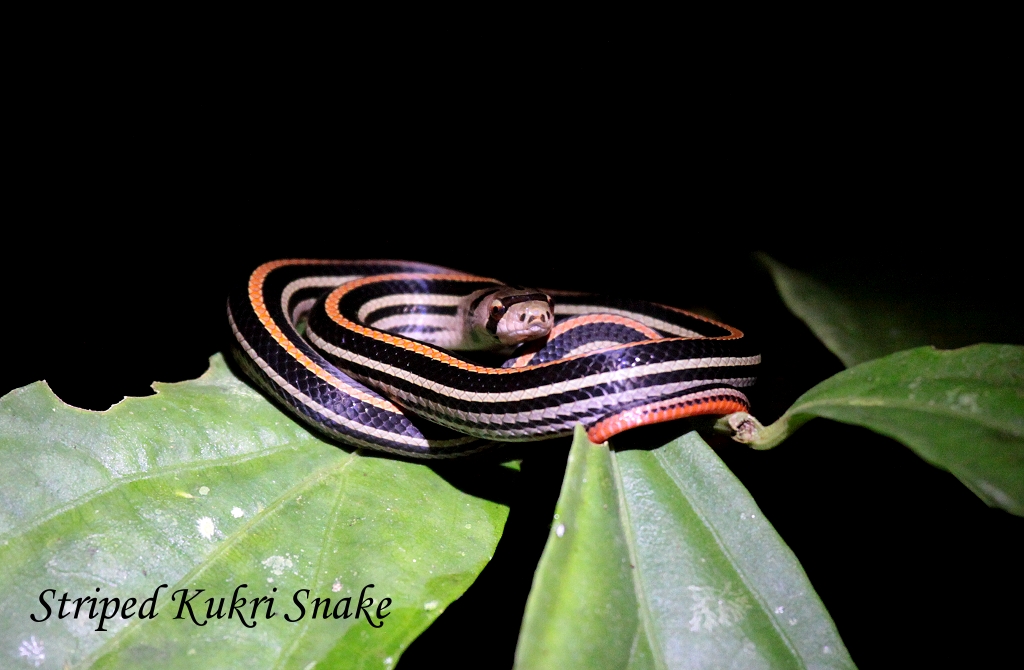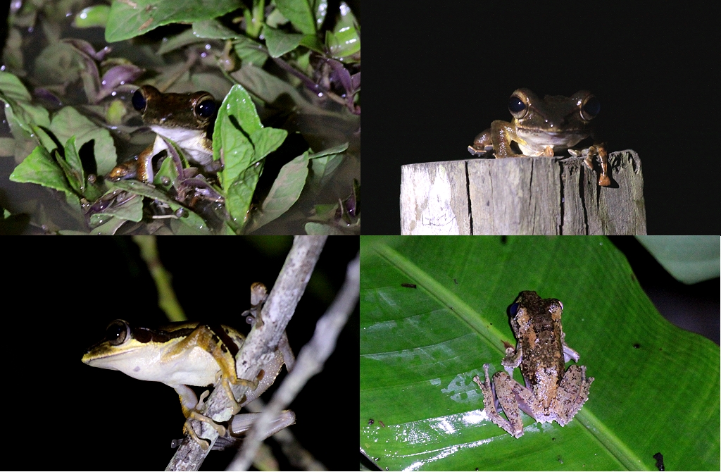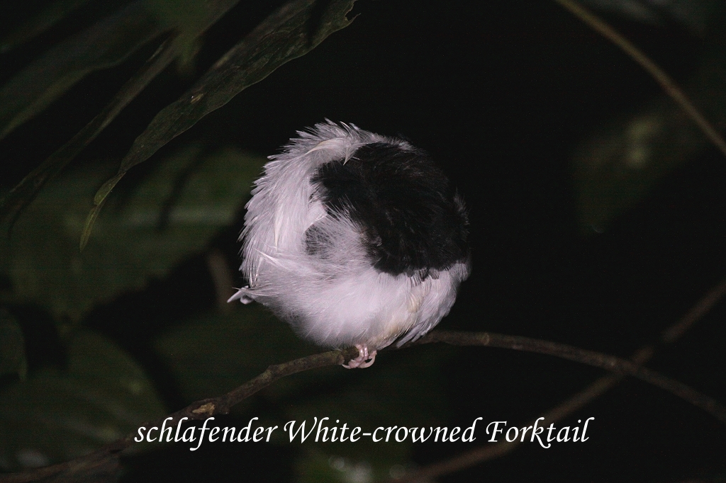 Sie sollte es nicht bereuen. Rafel leuchtete mit seiner Taschenlampe die Gegend ab und fand innerhalb kürzester Zeit alles mögliche in der Dunkelheit: ein Civet, quakende Frösche, Insekten, Nachtfalter, eine kleine zierliche Baumschlange, ein auf einem Ast schlafendes Vögelchen (White-crowned Forktail) und als Höhepunkt eine große Eule (Brown Wood Owl). |