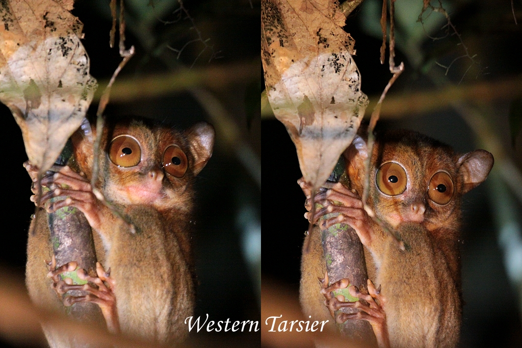 Er hatte etwas ganz besonderes entdeckt, einen Western Tarsier (Sunda-Koboldmaki), eine Halbaffenart die nur in Borneo, Sumatra und den vorgelagerten Inseln vorkommt und das auch noch äußerst selten. Dieses Äffchen wird nur bis 13 cm groß, hat aber einen langen Schwanz. Das war eine große Sensation, denn alle Führer die davon hörten waren begeistert, viele die schon lange hier arbeiteten hatten dieses nachtaktive Äffchen noch nie zu Gesicht bekommen. Berühmte Forscher wie David Attenborough sind hierher gereist, um dieses seltene Tier zu sehen. Tomoko gelang es im Schein meiner starken neuen LED-Taschenlampe einige tolle Fotos zu schießen. Auf unserem weiteren Rundgang sahen wir wieder den schlafenden Forktail, der an der gleichen Stelle wie gestern Abend saß. Die Eule war diesmal nicht zu sehen, dafür tauchte kurz ein Civet auf, der aber ziemlich scheu zu sein schien und gleich wieder im Dunkel verschwand. Einen weiteren auf einem Ast schlafenden Vogel sahen wir noch, sowie eine Firefly und einen Giant Millipi, ein großer roter Tausendfüßer. Begeistert kehrten wir gegen 21:30 Uhr zur Lodge zurück. Wir bedankten uns herzlich bei Rafel, der wirklich ein ausgezeichneter Führer ist, sachlich und kompetent, dabei immer äußerst freundlich. Zurück im Zimmer schauten wir neugierig unsere gemachten Fotos an, duschten noch mal, schrieben Tagebuch und gingen dann gegen 22:30 Uhr schlafen.