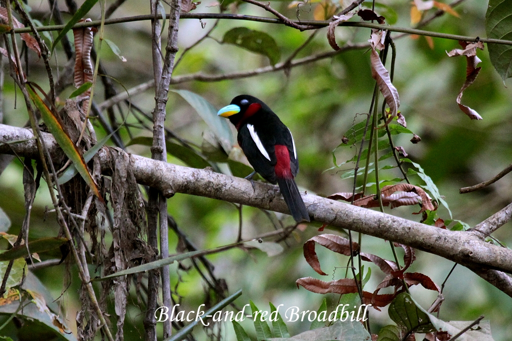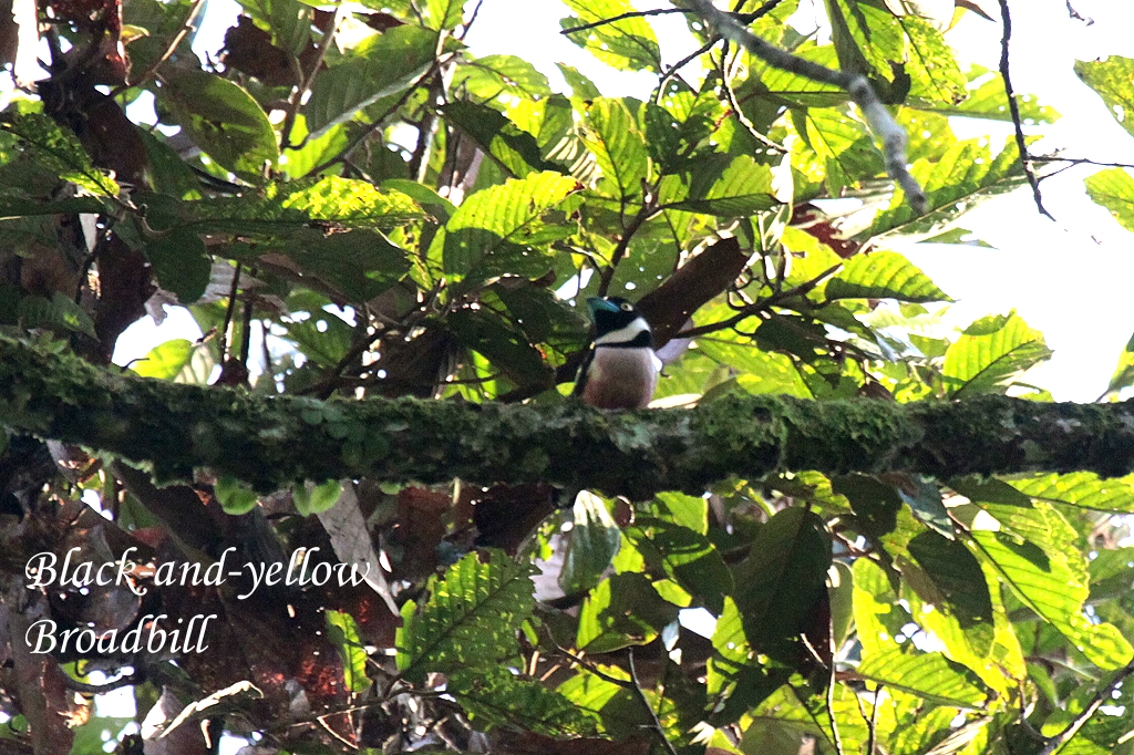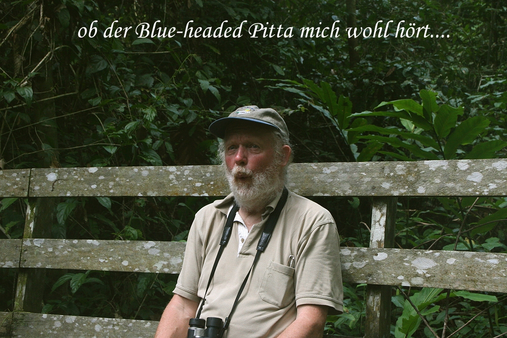 Ihr Mut wurde belohnt, denn es dauerte nicht allzu lange, bis dieser wirklich schöne Vogel auftauchte. Wir befanden uns hoch in den Baumwipfeln. Dieser Broadbill ist deshalb so schwer zu sehen, weil er sich meistens in großer Höhe aufhält. Man hört in oft rufen, aber durch das dichte Blattwerk ist er kaum zu sehen. Es kamen auch noch ein Dark-throated Oriole und ein Leafbird. Um 7:50 Uhr hörten wir den Lastwagen kommen, der uns wieder zur Lodge zurückbrachte. Nun war es Zeit für ein leckeres Frühstück auf der Terrasse. |