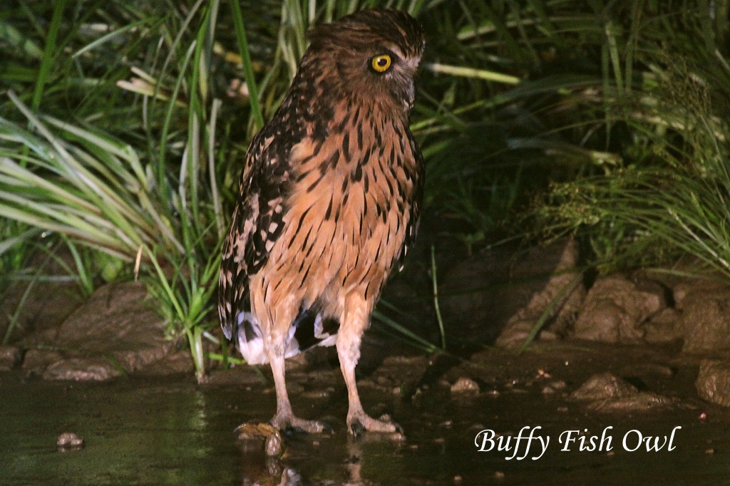 Wir waren uns gar nicht sicher, ob er in der Dunkelheit wieder einen Schlafplatz finden würde. Das passierte noch zweimal, mit einem Blue-eared Kingfisher und einem weiteren Stork-billed Kingfisher. Tomoko und ich waren beide etwas betroffen, diese Tiere, die nicht nachtaktiv sind, sollte man nicht stören. Etwas anderes ist es, wenn man ein nachtaktives Tier sieht, wie eine Eule (Buffy Fish Owl), die wir kurze Zeit später am Ufer entdeckten. Wir bogen bei einem kleinen Seitenarm des Flusses ab. In einem Busch, dessen Zweige über dem Wasser hingen, sahen wir eine zusammengerollte gelb-schwarze Schlange, eine Mangrove Snake. |