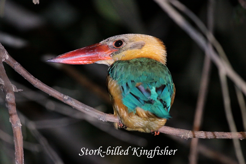 Wir sahen noch einige Silver Languren, Purple Herons, Slender Craws, Rhinoceros Hornbills, Dollarbirds und Little Herons. Nach insgesamt 19 km Fahrt kamen wir um 18:30 Uhr wieder bei der Lodge an. Wir duschten und gingen um 19:30 Uhr zum Abendessen, das auch hier als Büffet angeboten wird. Es war zwar nicht so reichhaltig wie in der Lodge im Danum Valley, schmeckte aber auch sehr gut. Um 20:30 Uhr stand eine Nachtfahrt mit Boot auf dem Programm, an der Tomoko und ich teilnahmen. Wir fuhren ein wenig den Fluss aufwärts. Unser Führer leuchtete mit seiner starken Taschenlampe das Ufer ab. Als erstes entdeckte er einen Stork-billed Kingfisher. Leider blieben wir zu lange mit eingeschalteten Taschenlampen hier stehen. Der Kingfisher fühlte sich gestört und flog weg. |