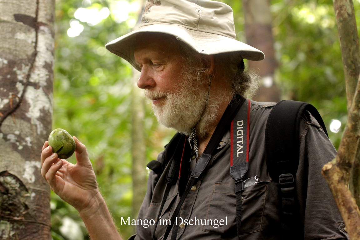 Bei dem nassen Untergrund war es ziemlich schwierig über die rutschigen Baumwurzeln den Hügel hinauf zu klettern. Wenn wir kurz stehen blieben, sahen wir sofort einige Leeches sich auf uns zu bewegen. Immer wieder schauten wir auf unsere Schuhe und die Hosenbeine. Manche Leeches schafften es, an unseren Schuhen hoch zu klettern, doch wir konnten sie immer rechtzeitig daran hindern sich irgendwo festzusaugen. Nach einer halben Stunde hörten wir klopfende Geräusche vor uns. Es waren drei Spechte, die diese Geräusche verursachten. Einen konnten wir sehen und bestimmen, ein prächtiger Orange-backed Woodpecker. Tomoko machte mehr Fotos als üblich, da man bei den schnellen und heftigen Kopfbewegungen des Spechtes nicht sicher sein konnte, ob die Bilder durch Bewegungsunschärfe nicht unbrauchbar würden. |