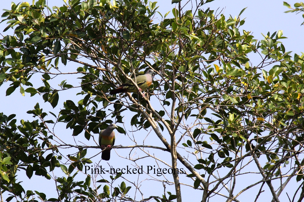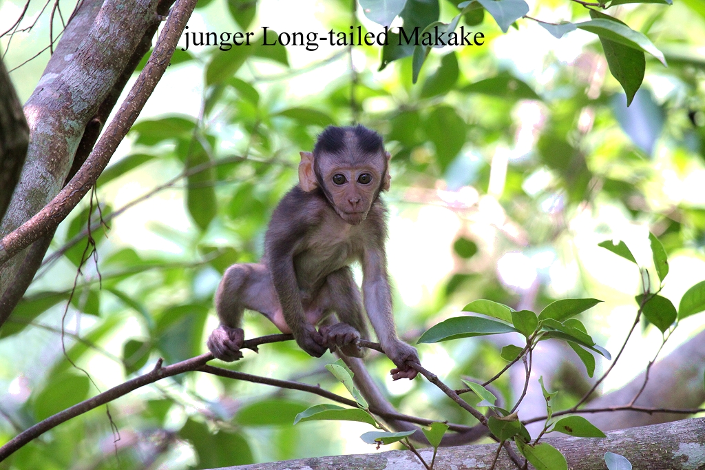 In den Bäumen beim Hotel waren viele Affen ( Sundaic Silvered Languren) zu sehen. Diese sehen sehr nett aus, besonders die orangene Farbe der kleinen ist schön anzusehen. Vor einer Stunde sah es noch nach einem Gewitter aus, doch um 16:00 Uhr war der Himmel wieder ziemlich klar, so dass wir in das nahe gelegene Nature Reserve Center fuhren. Kaum hatten wir einige Schritte in den Mangrovenwald gemacht, fielen die Moskitos wieder in Scharen über Tomoko her. Ich besprühte sie noch mal von allen Seiten mit einem Schutzmittel, doch viel half es leider nicht. Langsam wanderten wir ungefähr 2 Stunden umher und konnten folgendes sehen: Red-eyed Bulbuls, Hill Mynas, Ashy Tailorbirds, Black-necked Oriole, Oriental White-eyes, Asian Paradise Flycatcher (female), Warbler (Arctic ?), White-throated Fantails, Stork-billed Kingfishers, |