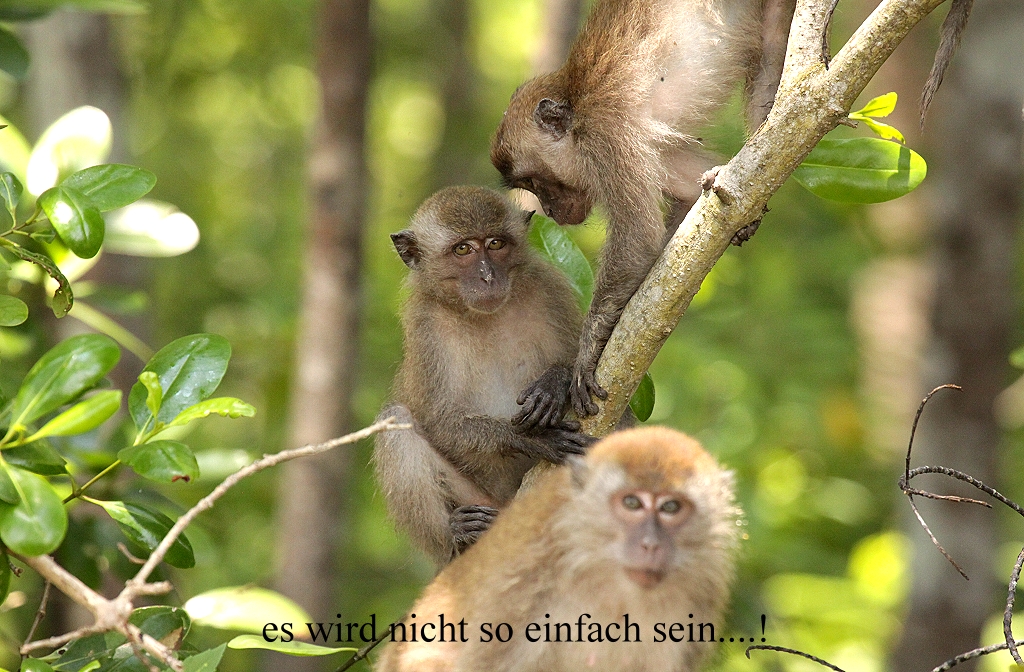 Sie schienen sehr an unseren Keksen interessiert zu sein und bildeten einen großen Halbkreis um uns, blieben jedoch in respektvoller Entfernung. Es schien so, als ob sie eine Strategie entwickelten, wie sie an unsere Kekse kommen könnten. Nach 10 min zogen sie sich jedoch wieder zurück, weil sie anscheinend einsahen, dass bei uns nichts zu holen war. Wir trafen ein Ehepaar, das in der Gegend von Kuala Lumpur wohnt und ebenfalls Vögel beobachtete, speziell die Raubvögel, die jetzt auf ihrem Zug nach Süden dieses Gebiet überflogen. |