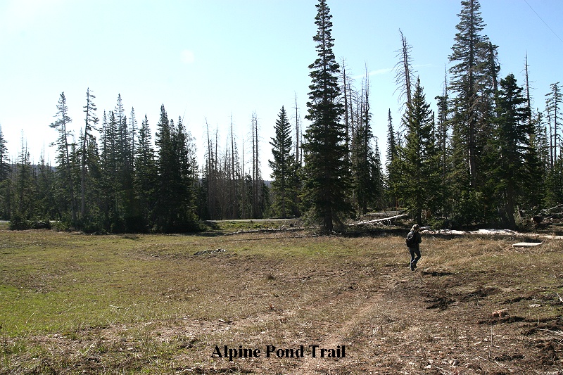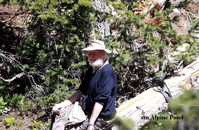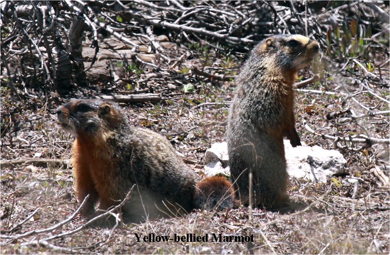 In der Nähe des Parkplatzes konnten wir ein Yellow-bellied Marmot (Murmeltier) beobachten, ein putziges Tier mit dichtem Winterpelz. Später kam noch ein zweites dazu. Wir fuhren 7 km weiter, wo der Alpine Trail anfing, ein 2,5 km langer Wanderweg, der sich durch den Nadelwald schlängelt bis zu einem kleinen, vielleicht 100m langen flachen See mit glasklarem, aber eiskalten Wasser. Teilweise mussten wir durch Schneereste stapfen, ein seltsames Gefühl nach dem Marsch gestern durch Wüstengebiet. Die kleinen Steigungen brachten uns gleich mächtig ins Schnaufen, verständlich bei der Höhe von 3.250 m. Unterbrochen von vielen Fotostopps (Liste der gesehenen Tiere am Ende) wanderten wir von 10:30 - 12:30 Uhr. Die Sonne schaffte es, dass die Temperatur allmählich wärmer wurde. Im Anschluss an unsere Wanderung ging es mit dem Auto weiter durch endlose Nadelwälder, immer wieder unterbrochen von großflächigen Wiesen, die der Schnee erst vor kurzem freigegeben hatte, so dass das Grün noch etwas schmutzig wirkte. |