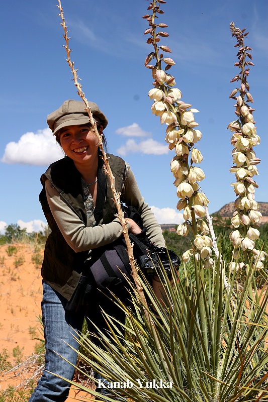 Ein erster Schritt vor die Tür ließ uns vor Kälte zittern. Es war höchstens 3 oder 4°. Also zogen wir alles an, was wir an warmen Klamotten zur Verfügung hatten. Tomoko zog sogar Strumpfhose und Handschuhe an. So ließ es sich aushalten. Die Sonne schien schon, doch sie stand noch sehr tief, so dass ihre Strahlen uns kaum erwärmen konnten. Die Wiesen waren vom Nachtfrost weiß überzogen. Wir machten einige Fotos und kehrten dann hungrig gegen 8:30 Uhr zurück. Das Frühstück war ansprechend. Da heute Pfingstsonntag war, beschlossen wir , nicht zum Zion NP zu fahren, der sicherlich am heutigen Feiertag ziemlich überlaufen war. |