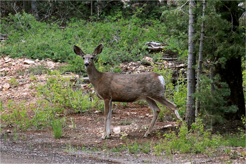 Für heute stand ein längerer Reisetag bevor Richtung Grand Teton NP. Diesmal standen wir etwas später auf (gegen 6:45 Uhr) und machten vor dem Frühstück um 8:30 Uhr noch einen Morgenspaziergang durch den Wald. Wir konnten 2 verschiedene Spechte (Williamson's Sapsucker (Männchen und Weibchen), Downy Woodpecker) beobachten sowie ein Paar Western Tanager, Red-breasted Nuthatch, Western Kingbird und einige Golden-mantled Ground Squirrels, sowie nochmals zwei Rehe. |