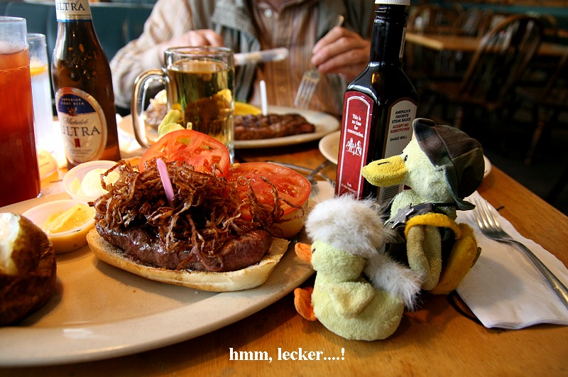 Langsam meldete sich der Hunger. Wir fanden ein Steakhaus ganz im Western Stil, wo wir um 17:00 Uhr uns beide ein sehr gutes Steak mit Salatbar genehmigten. Es fing wieder an zu regnen. Gegen 18:30 Uhr waren wir dann zurück auf unserem Zimmer, schalteten die Heizung ein und begannen mit unserer täglichen Abendbeschäftigung: Internet, Tagebuch schreiben, Vogelfotos bestimmen und sortieren. Gegen 21:00 Uhr war dann Bettruhe . |