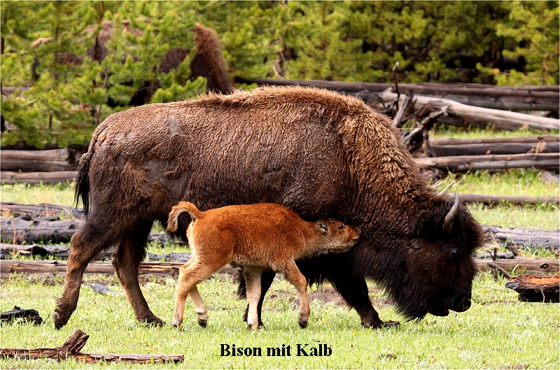 weiter nach Westen fuhren, fing es plötzlich kräftig an zu regnen. Wir fotografierten einige Elks und Bisons. Über die 2550 m hohe kontinentale Wasserscheide, am Old Faithful-Geysir" vorbei (den wir später besichtigen wollen), ging es weiter Richtung Westen. Im Madison Valley ca. 15 km vor dem Westeingang des Nationalparks kam plötzlich die Sonne wieder hervor. Plötzlich tauchte unmittelbar neben der Straße eine große Herde Bisons mit vielen kleinen Kälbern auf. Wirklich niedlich, diese tapsigen Kleinen. Einige Bisons berührten fast unser Auto, so dass wir nicht wagten auszusteigen. Dann nach insgesamt 215 km Fahrt erreichten wir West-Yellowstone. In einem Supermarkt ergänzten ihre unsere Wasser-, Bier- und Nahrungsvorräte (u.a. Salat fürs Abendessen) und fuhren zu unserem Hotel "Best Western Crosswinds Motor Inn". Wir erhielten ein schönes großes Zimmer, das nun für die kommenden sechs Nächte unser Zuhause sein sollte. Inzwischen war es nach 17 Uhr. Gegen 18 aßen wir dann unseren Salat mit Ritz Crackern und Pilsner Urquell, schauten unsere Fotos, checkten E-Mail und forschten noch etwas im Internet. Gegen 21:30 Uhr gingen wir schlafen. |