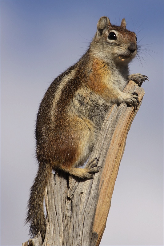 Wir sahen Stellar Jay, Say's Phoebe, Townsend Solitaire, Mountain Chickadee, Juncos, White-breasted Nuthatch, viele kleine Chipmunks und Golden-mantled Ground Squirrels. Immer wieder streiften unsere Blicke über die unzähligen Hoodoos, die durch Erosion geschaffenen Säulen, die in unterschiedlich orangefarbenen Tönen leuchteten, wirklich beeindruckend. Langsam meldete sich der Hunger und wir fuhren zurück. In einem Restaurant an der Einmündung der Bryce-Canyon-Road in den Highway US-12 aßen wir zu Abend. Die mexikanischen Burritos und die Scampis von Tomokos Vater schmeckten sehr gut. Müde fuhren wir gegen 20:30 Uhr zum Hotel zurück. Tomoko und ich schauten uns noch unsere gemachten Fotos an. Danach schrieb ich Tagebuch, während Tomoko noch ins Internet schaute. Um 22:00 Uhr gingen wir schlafen. |