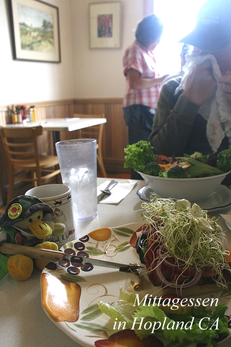 Diesmal wurden wir schon gegen 3.30 h wach, fühlten uns aber schon ziemlich ausgeschlafen. Wir blieben trotzdem noch ein Stündchen liegen, da aber an Schlaf nicht mehr zu denken war, standen wir auf und schauten mal bis 6.00 h ins Internet. Dann wieder Frühstück bei IHOP, genauso gut wie gestern. Nachdem wir unser Gepäck ins Auto verladen hatten, fuhren wir gegen 8.15 h los Richtung Norden. Zügig erreichten wir die Stadtbezirke von San Francisco. Der Himmel war sehr grau und aus den Wolken rieselte ein feiner Sprühregen. Um 9.00 h kamen wir bei der Golden Gate Brücke an, die wir zügig überquerten. Der Verkehr war relativ dicht, lief aber zügig. Nach einer halben Stunde verließen wir den Highway US101 und bogen ab Richtung Bodega Bay, einem kleinen Fischerdörfchen an der Küste. Kurz bevor wir den Ort gegen 10.15 h erreichten, rissen die Wolken auf. Die Sonne schien wieder und tauchte das Meer in ein kräftiges Blau. |
