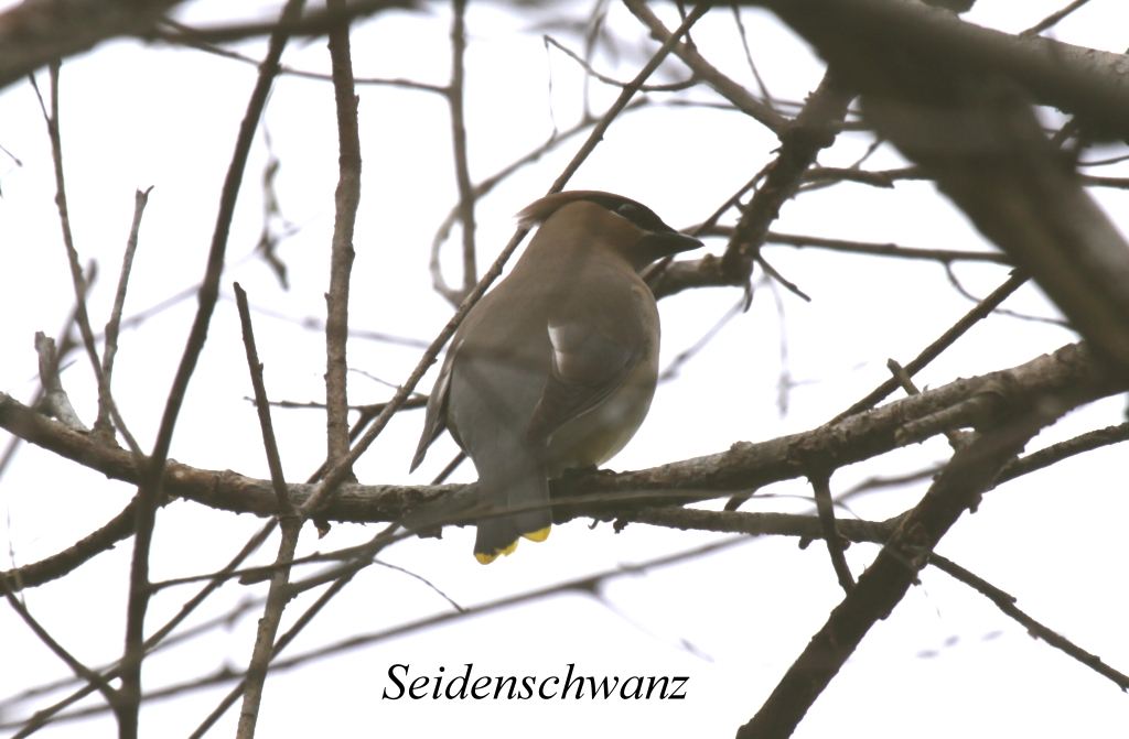Nach einer knappen Stunde erreichten wir einen kleinen Rastplatz, wo wir schon vor 5 Jahren gehalten hatten und damals etliche Kolibris fotografiert hatten. Auch diesmal saß einer auf einer Telefonleitung, flog aber schnell weg. In einem Gebüsch am Rande entdeckte Tomoko einen White-crowned Sparrow, einige Robins mit Jungen sowie einige Seidenschwänze. Nach kurzer Pause fuhren wir weiter und erreichten ziemlich bald den Redwood NP. Beim dortigen Visitor-Center machten wir kurz halt und informierten uns. Als wir zurück zum Auto kamen, klemmte ein Zettel hinter unserer Windschutzscheibe mit der Notiz "pro Stuttgart21, greetings" (war eine Reaktion auf unser großes gelbes rot durchgestrichenes STUTTGART21 - Schild, dass hinter unserer Rückscheibe klemmte). Wir wollten eine kleine Wanderung unternehmen auf einem etwas höher gelegenen Trail. Als wir jedoch am Startpunkt ankamen, fing es heftig an zu regnen. Daraufhin verzichteten wir auf den Spaziergang und fuhren weiter. |