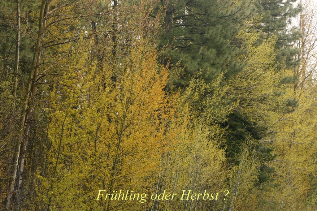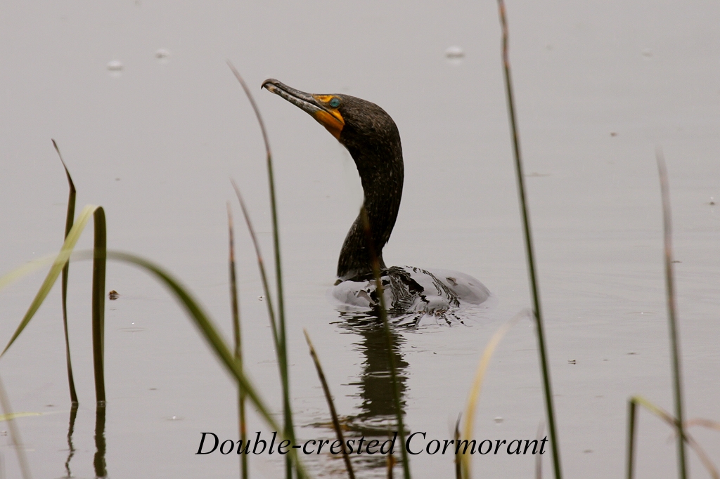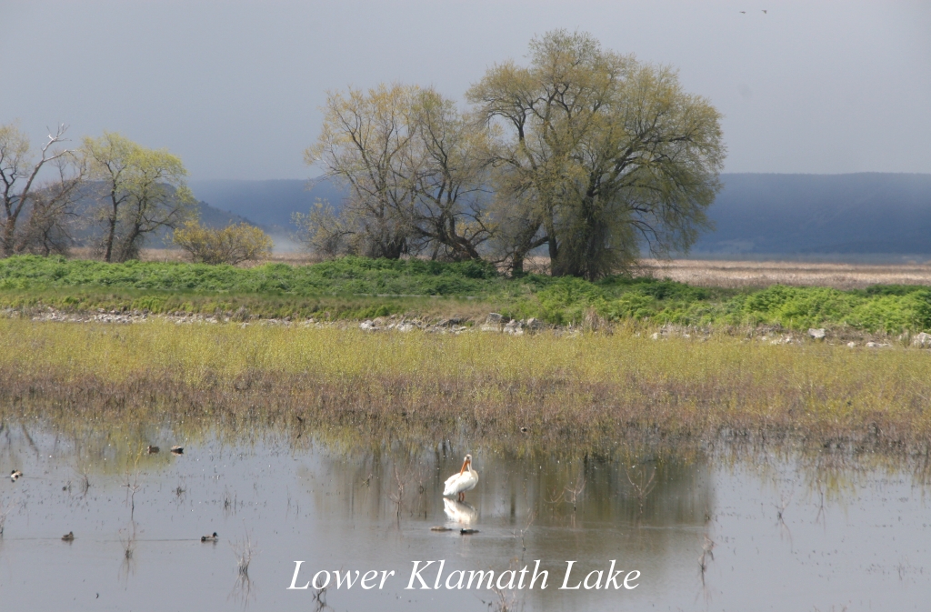 Ich befürchtete schon, dass wir mit unseren Sommerreifen Probleme bekommen würden. Es ging aber dann doch gut. Nachdem wir die höchste Stelle passiert hatten, ging der Schnee schnell wieder in Regen über. Nach einer guten Stunde verließen wir die Bergwelt mit seinen endlosen Wäldern und fuhren durch üppiges Grasland (1400 m hoch), auf dem kilometerweise Kühe und Schafe weideten. Es regnete immer noch. Wir fuhren jetzt nach Süden auf einer ruhigen Nebenstraße. Bald erreichten wir den Upper Klamath Lake, einen sehr großen See, auf dem zahlreiche Tauchvögel (grebes) und Kormorane (Double-crested Cormorant) zu sehen waren. An einer Stelle hielten wir eine Weile an und beobachteten sie mit unseren Ferngläsern. Wir warteten darauf, dass diese Tauchvögel ihren berühmten "Brauttanz" aufführen würden, leider vergeblich. Der Himmel riss jetzt immer wieder auf und der blaue Himmel kam zum Vorschein. Einige Bäume hatten junge Triebe mit einer merkwürdigen gelben Farbe, die uns mehr an Herbst als ans Frühjahr erinnerte. |