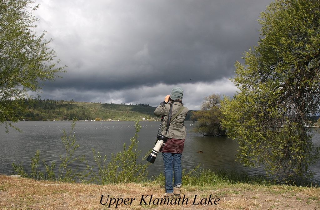 Um 7.00 h riss Tomoko die Vorhänge auf. Wir blickten wieder in einen mit dichten Wolken verhangenen Himmel. Nach dem recht guten Frühstück (es gab viel Obst) fuhren wir los, zunächst mal an das Südufer des Upper Klamath Lakes. Zahlreiche Tauchvögel (Grebes) schwammen im Wasser, die meisten schlafend. Es war saukalt, knapp über 0°. Einige Singvögel, teilweise mit Jungen, schwirrten um uns herum (Yellow Warbler, Warbling Vireo). |