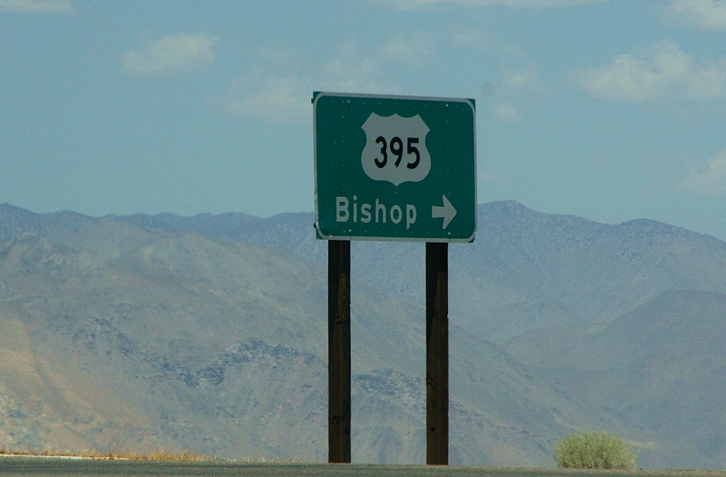 Nach dem Frühstück um 7.30 h checkten wir um 9.00 h aus und fuhren los nach Norden Richtung Bishop CA, einer kleinen Stadt am Ostrand der Sierra Nevada. Hier wollten wir einen Zwischenstopp auf dem Weg in den Yosemite Nationalpark machen. Es war schon sehr früh sehr heiß. Zunächst fuhren wir über den Highway 247 quer durch die Wüste nach Apple Valley, wo wir auf den Highway US 395 trafen, der am Ostrand der Sierra Nevada nach Norden verläuft. |