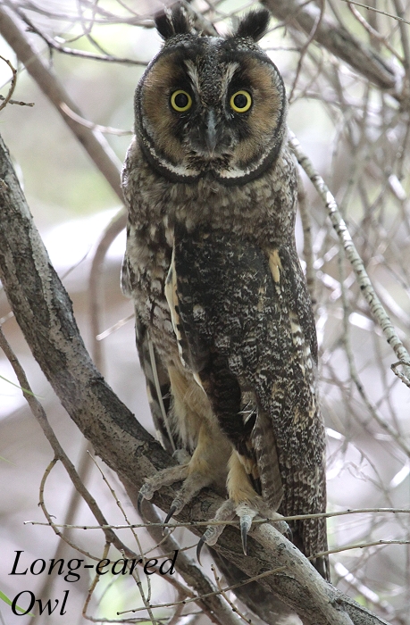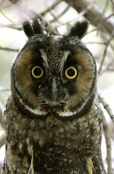 Schnell winkte ich die anderen heran. Die Eule, eine Long-eared Owl, schaute uns mit großen Augen regungslos an. Wir fotografierten fleißig. |