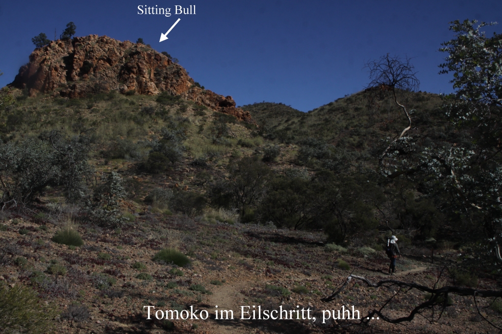 Wir umrundeten wieder den Sitting Bull (so heißt der Berg). Tomoko rannte leichtfüßig so schnell den Pfad hinauf, dass ich ihr kaum folgen konnte. |