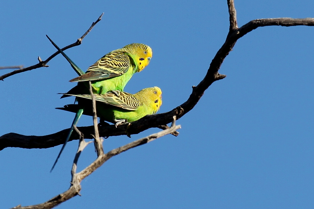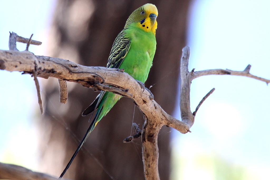 Etliche White-plumed Honeyeater waren zu sehen. Auf dem Fluss schwammen immer wieder Pelikane vorbei. Teilweise waren auch Pelikane im Formationsflug, mal 7, mal bis zu 20 Vögel gleichzeitig zu sehen. Auch zahlreiche Milane (Black Kite und Whistling Kite) sowie Kormorane kreisten in der Luft. Relativ selten kamen Wellensittiche näher.