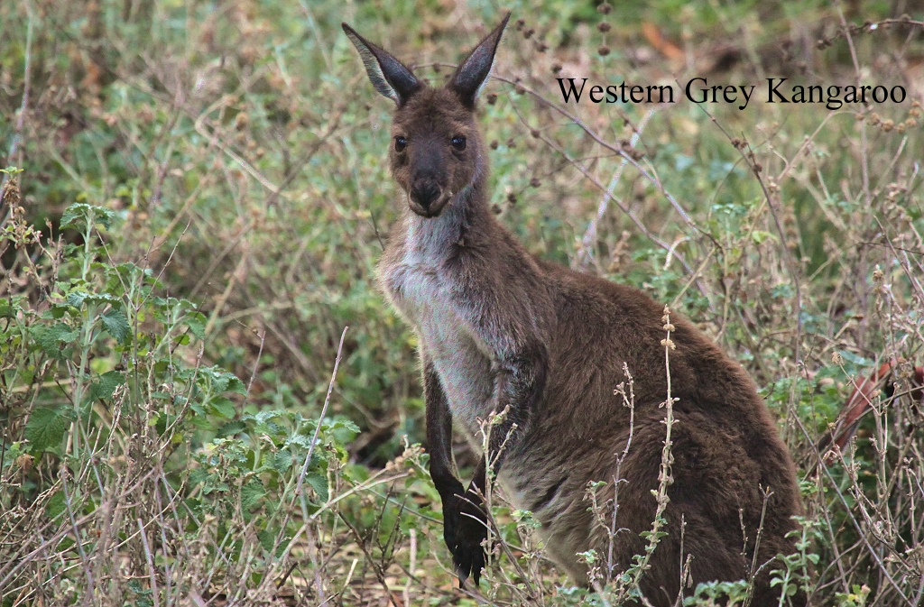 Im Supermarkt kaufte ich eine Flasche Merlot für 17 $, da Tomoko für heute Abend Pasta in Gorgonzola mit Feta-Käse vorgesehen hatte. Gegen 16.30 Uhr kehrten wir von unserem Spaziergang zurück. Wir hatten einige Emus und 2 Kängurus gesehen (Western Grey Kangaroo). Tomoko fing dann auch gleich an zu kochen. |