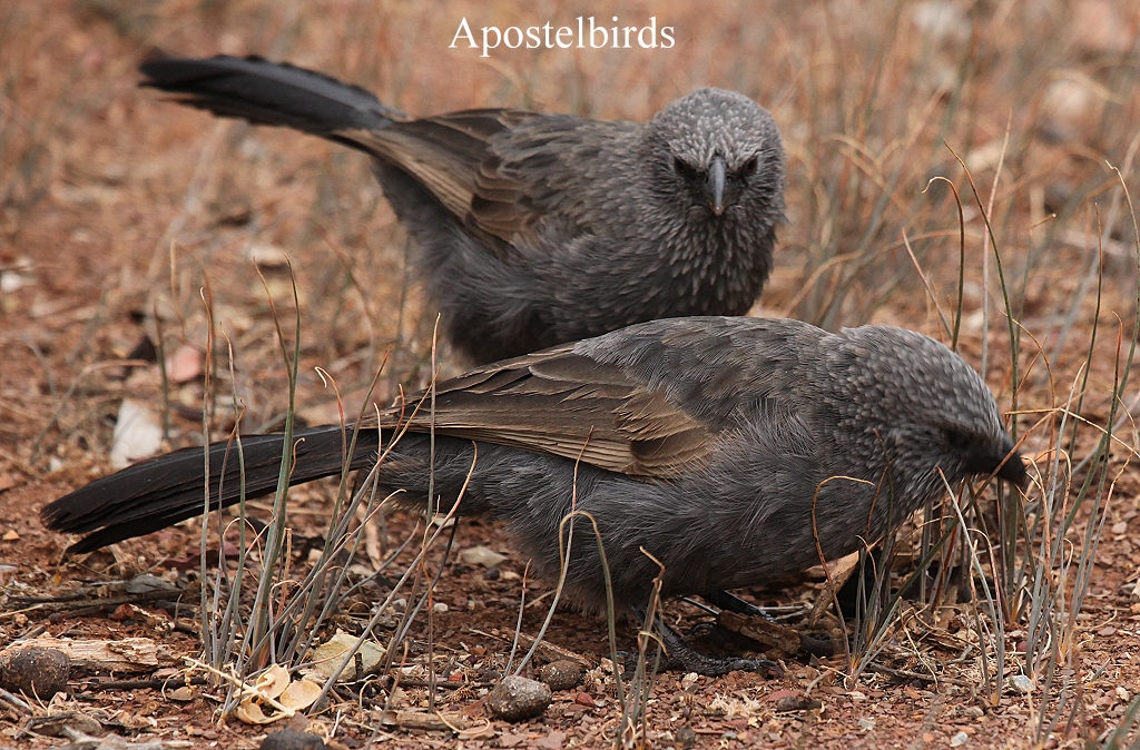 Auch einige Apostelbirds waren wieder da, die ganz nahe herankamen und darauf hofften, dass wir ihnen etwas zu picken geben würden. Papageien (Australian Ringnecks) sowie einige Fairy Wrens und ein Grey Butcherbird waren ebenfalls zu sehen. |
