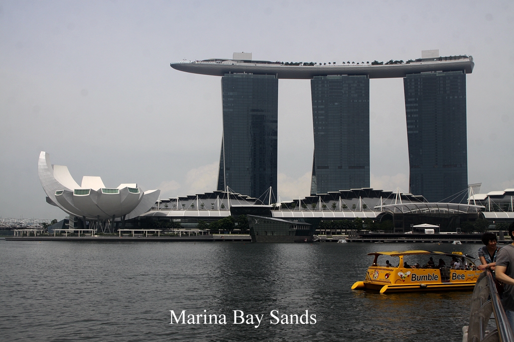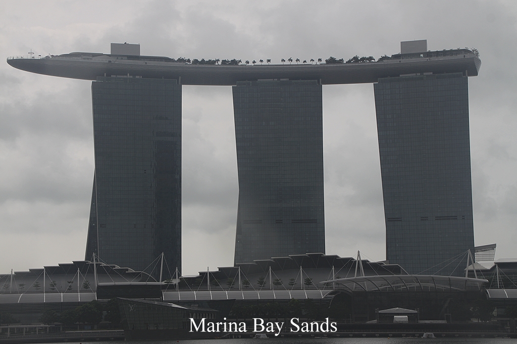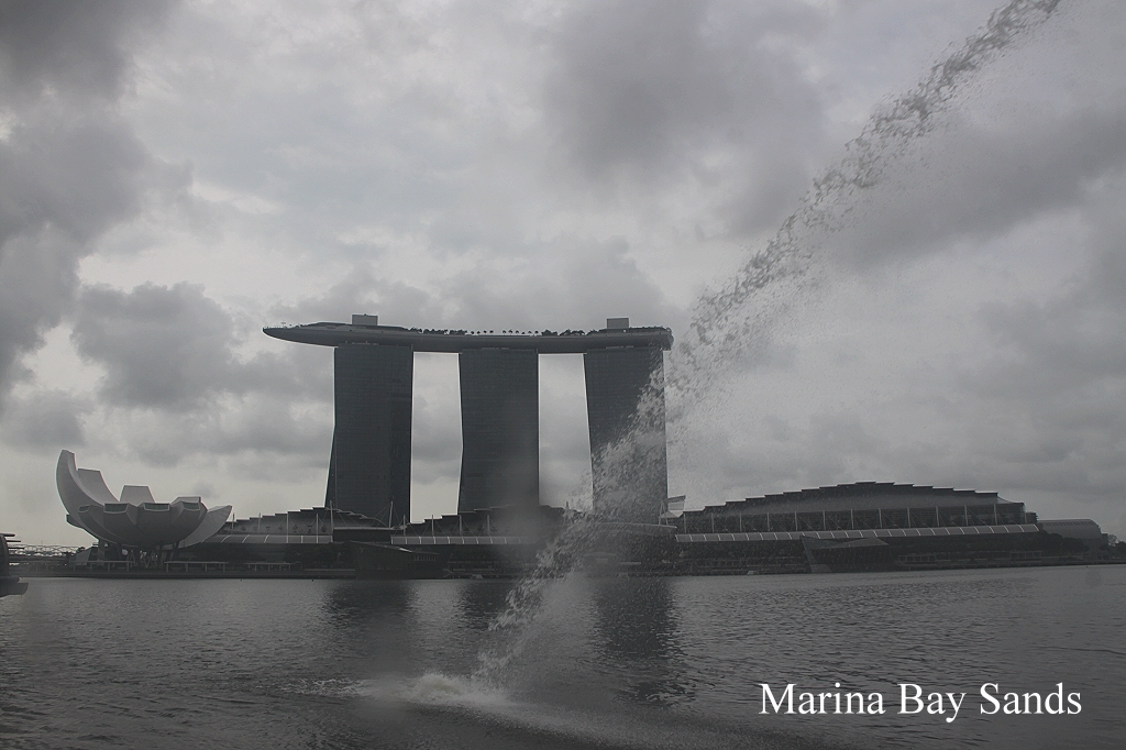 Gegen 7.15 Uhr wurden wir wach. Tomoko hatte einigermaßen gut geschlafen, obwohl sie während der Nacht ein Paracetamol gegen Fieber und eine Formigran-Tablette gegen Migräne nehmen musste. Ihre Temperatur betrug 36,8°, also besser als gestern. Um 8.20 Uhr gingen wir wieder zum gleichen Imbissstand wie gestern morgen frühstücken. Wieder bestellten wir Yakun Kaya Toast, diesmal jedoch ohne Ei. Anschließend machten wir einen 1,6 km langen Spaziergang Richtung Marina Bay, dort wo auch der bekannte Löwe von Singapur "Merlion", eine etwa 4 m hohe Steinfigur, in hohem Bogen einen dicken Wasserstrahl in die Bucht speit. Direkt gegenüber befindet sich auch das imposanteste Bauwerk Singapurs, das Casino Marina Bay Sands, das wie ein riesiges Schiff aus Beton die gesamte Bucht überragt. |
