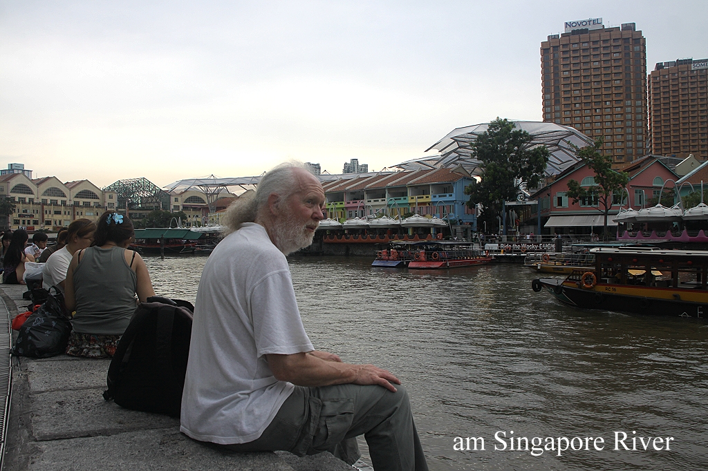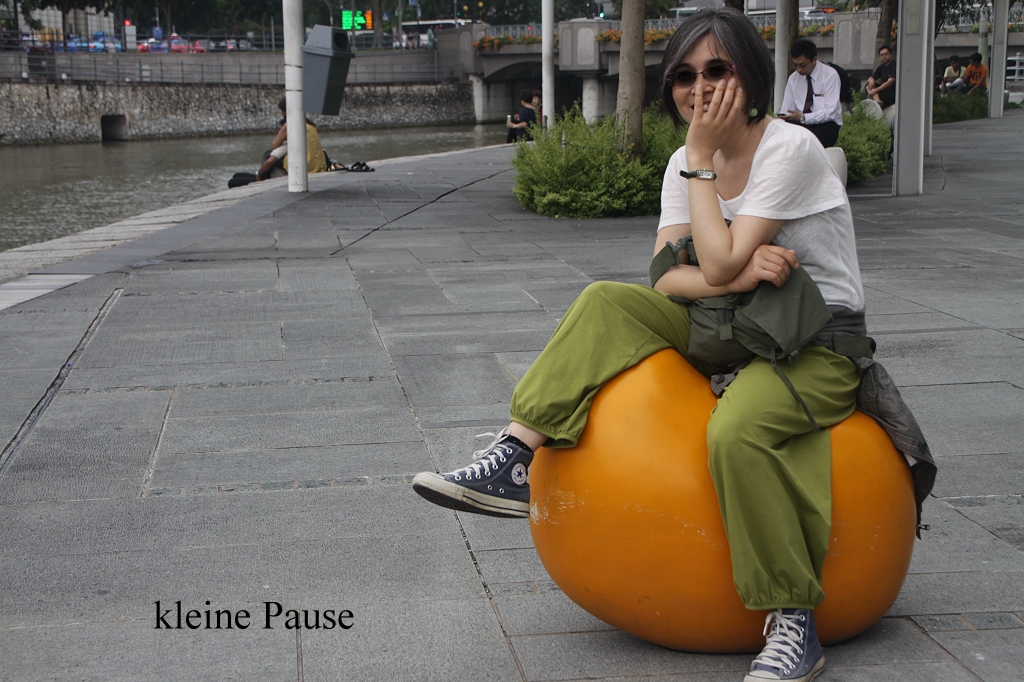 Tomoko kam für kurze Zeit hinzu, doch die Hitze setzte ihr in ihrem doch noch leicht kranken Zustand so zu, dass sie sich wieder ins Zimmer zurückzog. Als ich vom Schwimmen zurückkam, war auch ich ziemlich müde. Wir blieben aber nicht allzu lange drinnen, sondern spazierten zum nahen Singapore-River, machten einen kurzen Gang durch die Riverwalk Galeria am Clarke Quay und setzten uns dann für eine Weile auf die Steinstufen am Fluss. Immer wieder kamen Boote mit Touristen vorbei. 3 junge Mädchen fütterten die Vögel und Fische mit Brotkrümeln. |